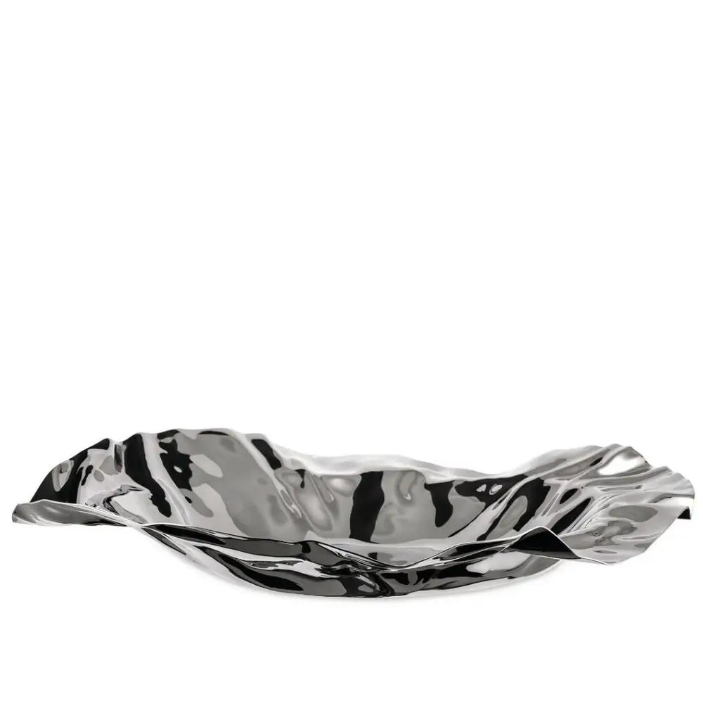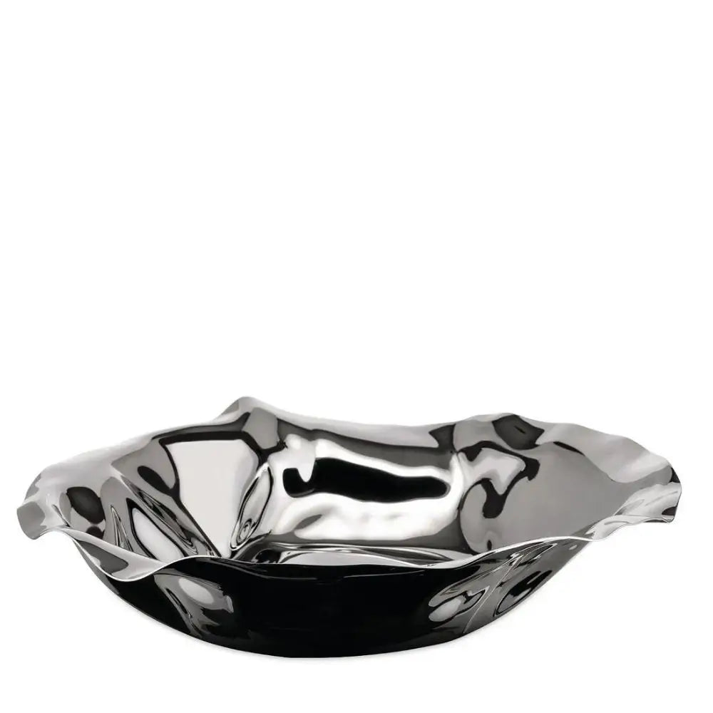 Alessi 9008 Sarrià/Port 不鏽鋼籃子 絕非普通。憑藉其皺摺、自然的形狀,這件作品打破了嚴格的形式感,為您的餐桌帶來大膽的藝術風格。設計用於食品用途且完全可用洗碗機清洗,它無縫結合了雕塑與功能,是盛放麵包、水果或裝飾展示的理想選擇。