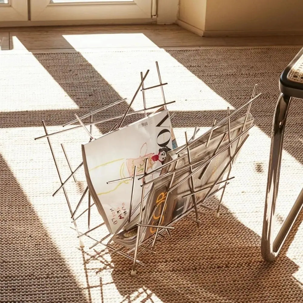 想像將動態捕捉於固定形態,這就是Alessi FC15 Blow Up 雜誌架的精髓。一組引人注目的鍍鉻鋼桿彷彿在自發運動中交織,實際上卻是對混沌的精心擁抱。功能性與視覺衝擊兼具,這件作品遠不止是一個收納單元,更是任何室內敘事中的雕塑亮點。