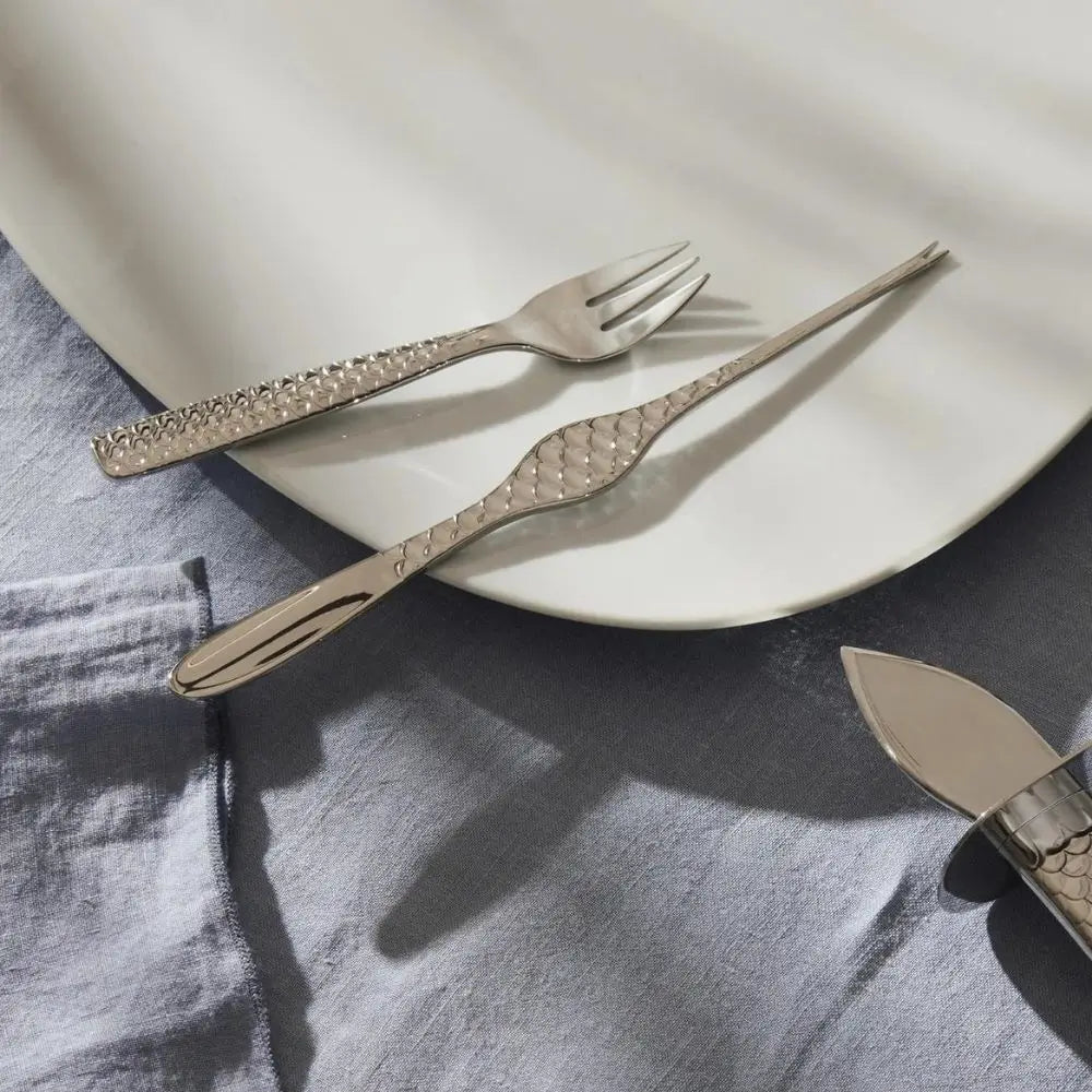 這套裝備旨在滿足尋求高級鋼製貝類叉 Alessi或收藏價值的Alessi Doriana e Massimiliano Fuksas貝類叉的品味人士,適合那些欣賞用餐體驗細節的人士擺放於餐桌上。