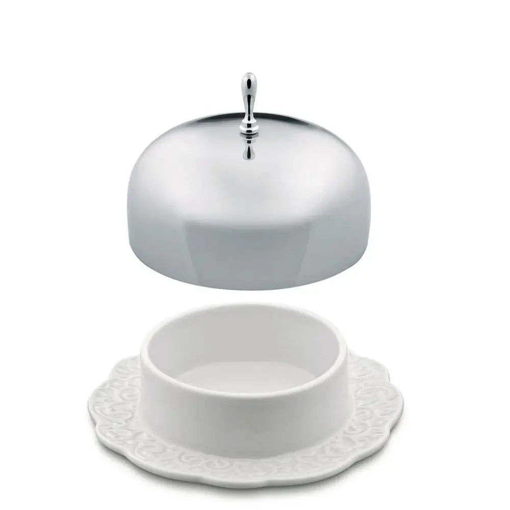 這款奶油盤 Alessi的核心是材料與質感的細膩互動。托盤由精緻的瓷器製成,具有浮雕裝飾——向古典優雅致敬,並為現代生活重新詮釋。拋光不鏽鋼蓋子增添了流暢且實用的觸感,同時保持使用間的鮮度。作為裝飾與實用元素,這款Alessi Marcel Wanders 奶油盤是挑剔主人與設計愛好者的完美選擇。