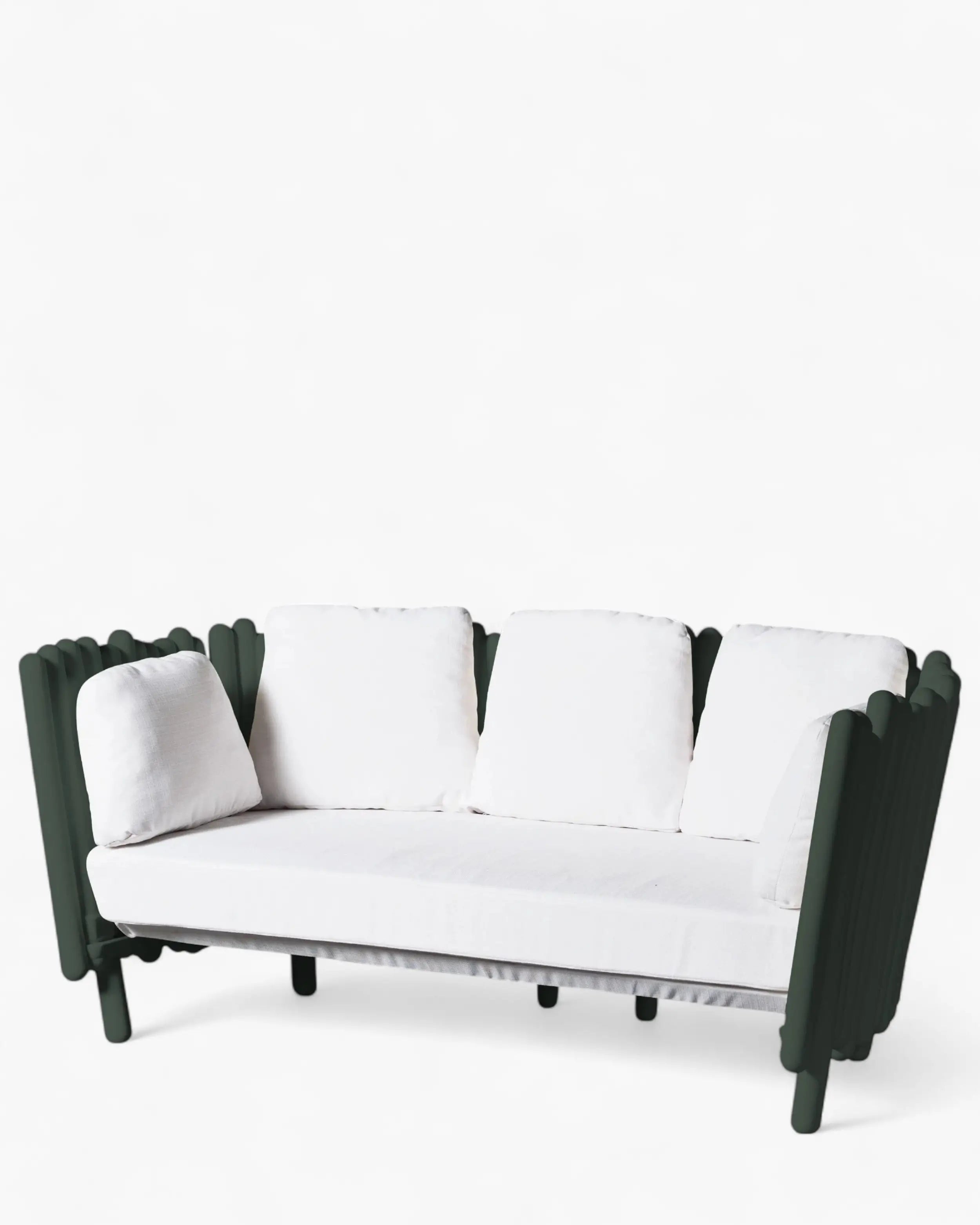 沙發提供白色、深灰色、鴿灰、赤陶色、孔雀綠和橄欖色,這一調色盤使其能根據環境轉變。白色強調其圖形現代感,深灰色凸顯建築力量,赤陶色連結地中海氛圍,而綠色與橄欖色則豐富其與自然的對話。這些細微差別使這款 設計師戶外沙發 適合私人與專業項目。