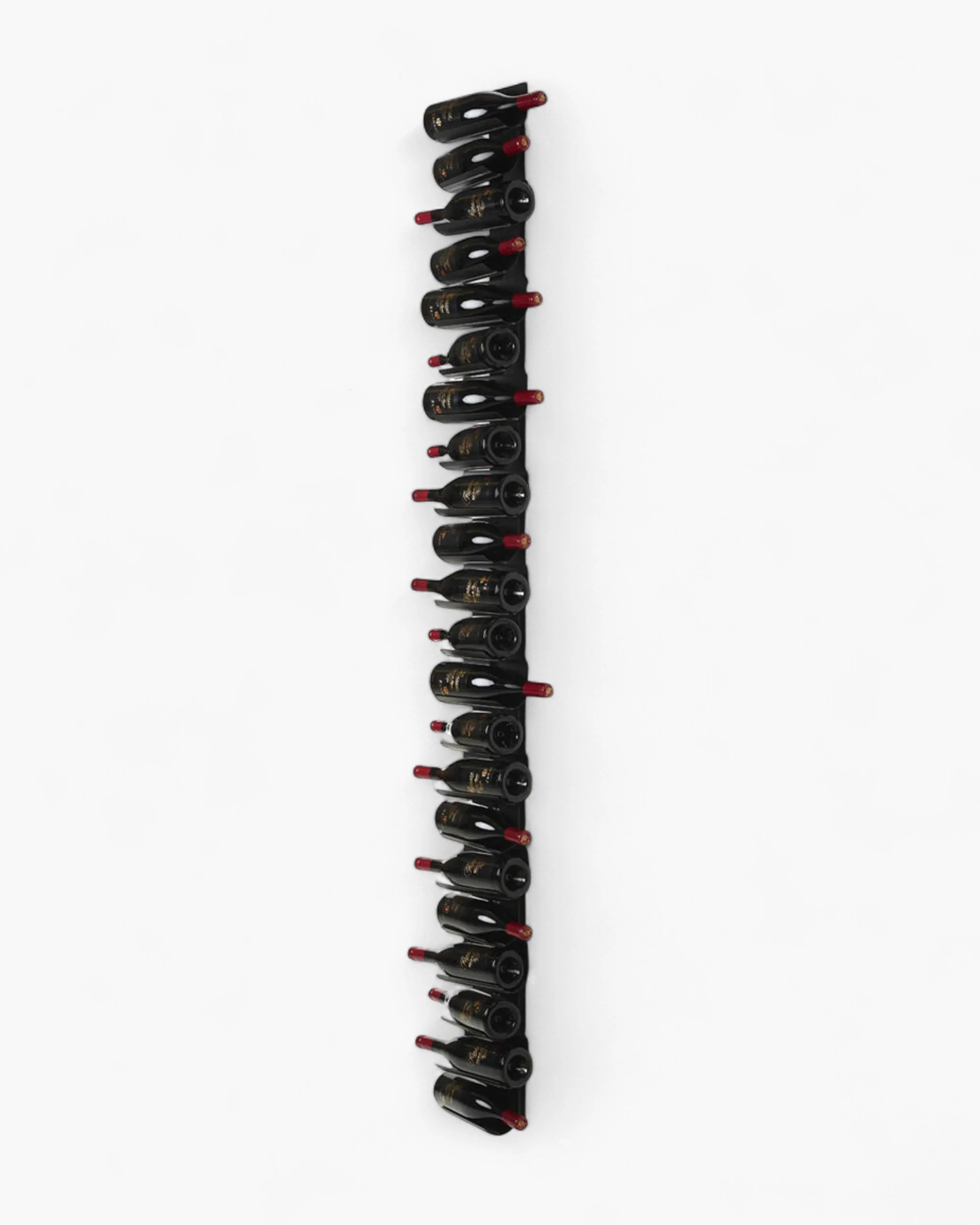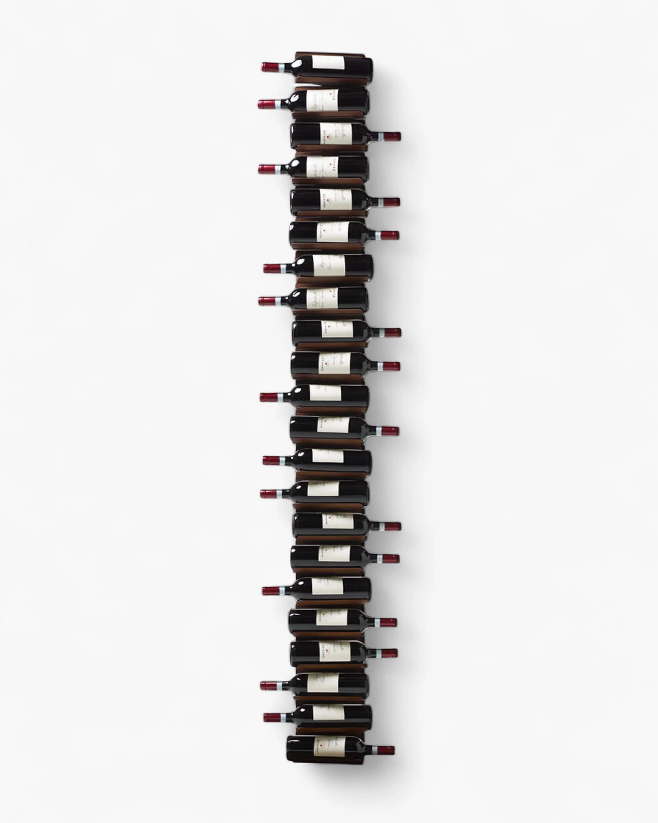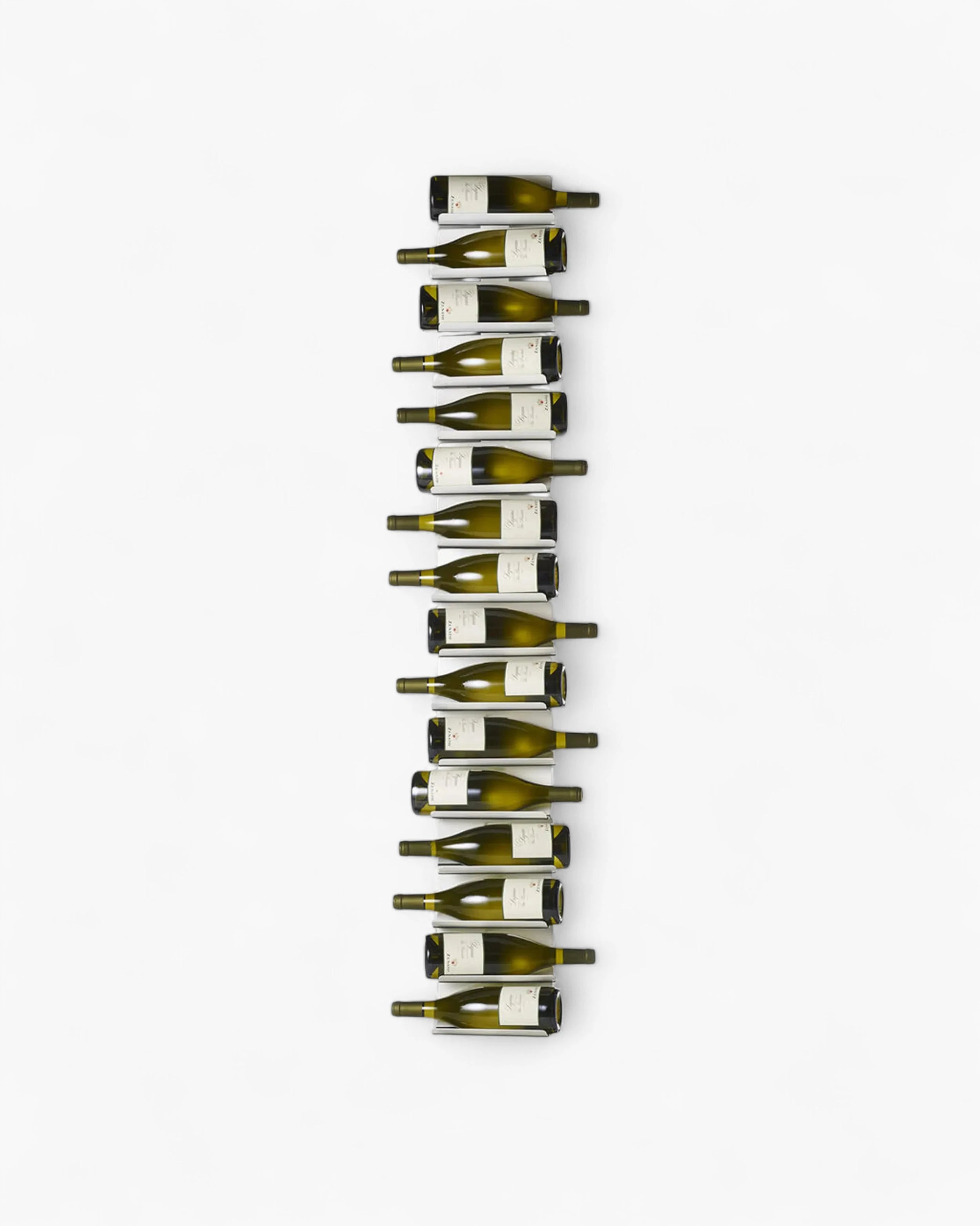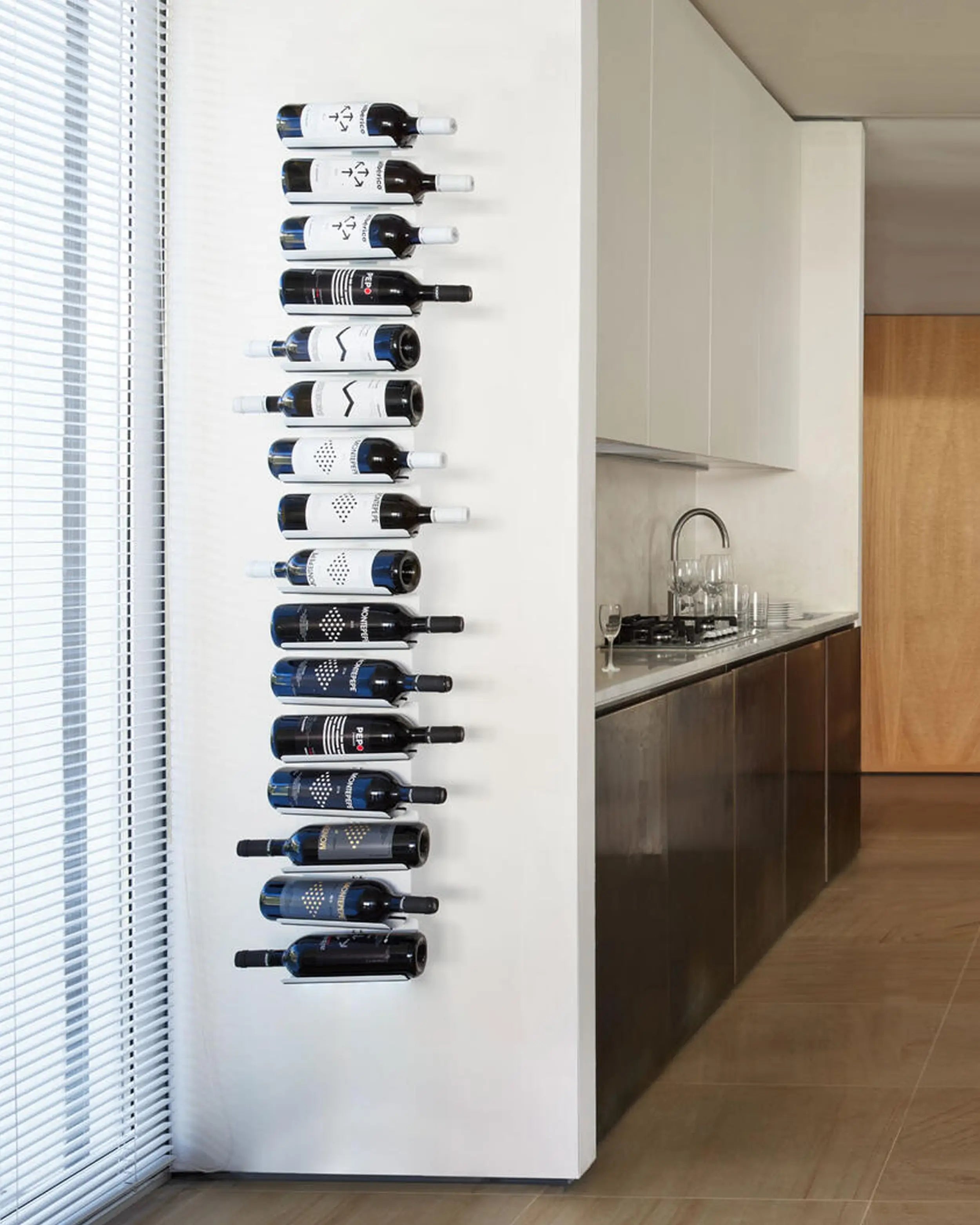 這款壁掛結構採用堅固鋼材製成,提供卓越穩定性,同時保持乾淨、簡約的輪廓。其層板配備可清洗的防滑彈性帶,確保每個酒瓶穩固安全。提供三種不同尺寸,依配置可容納 8 至 22 瓶,且因其模組化特性,允許無限組合。這是一個多功能解決方案,適用於不同類型的葡萄酒瓶,確保妥善存放與陳年,同時節省寶貴的地面空間。