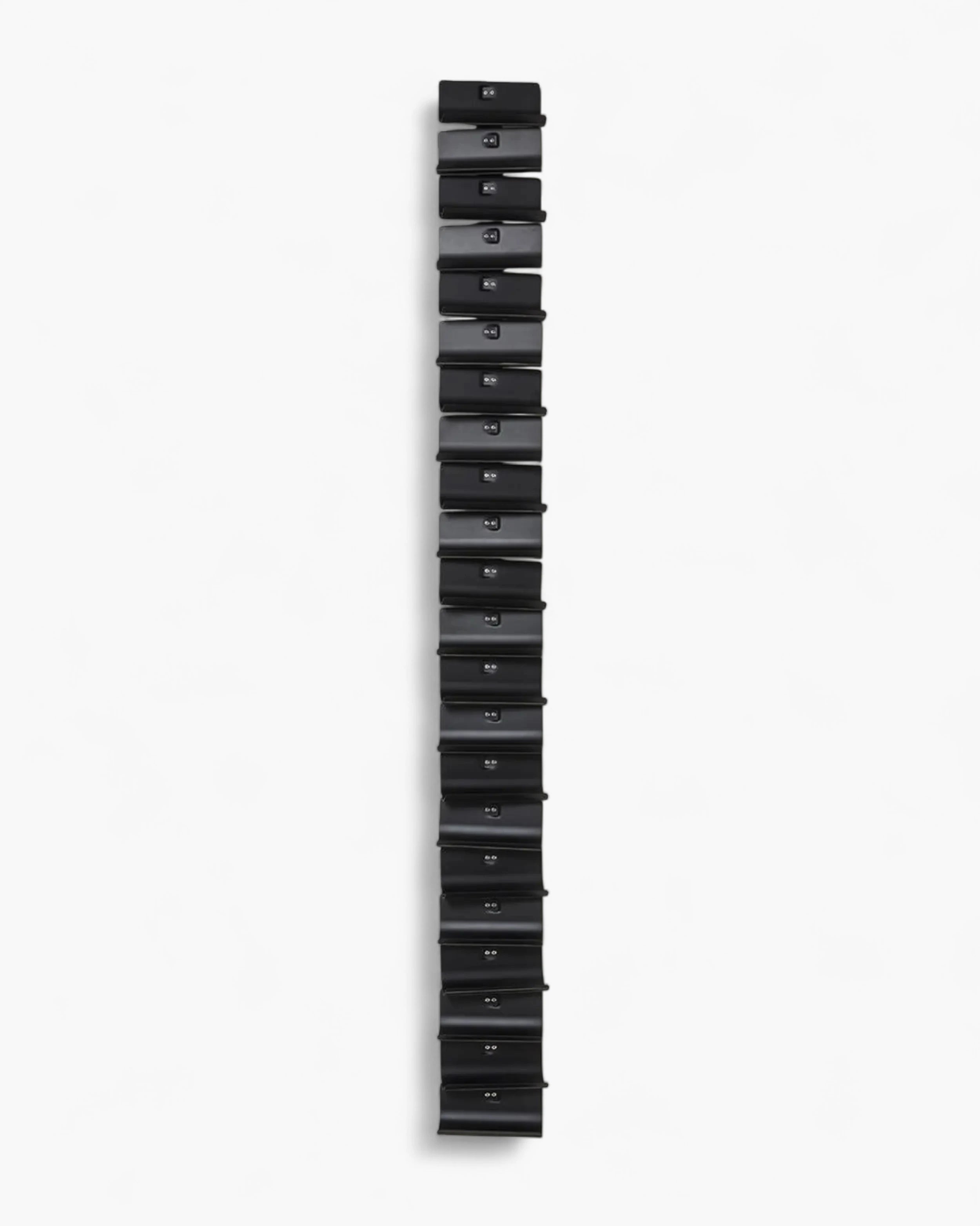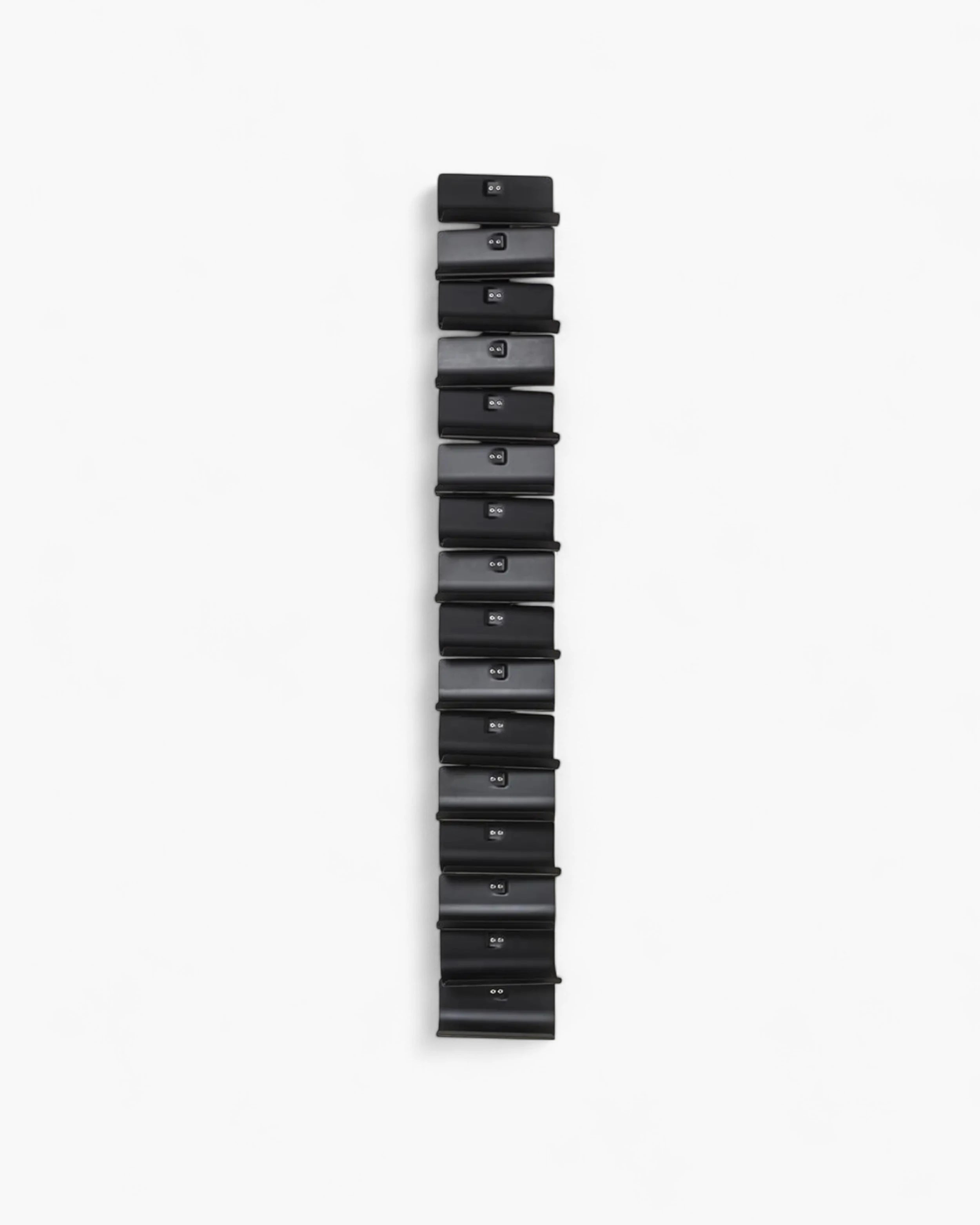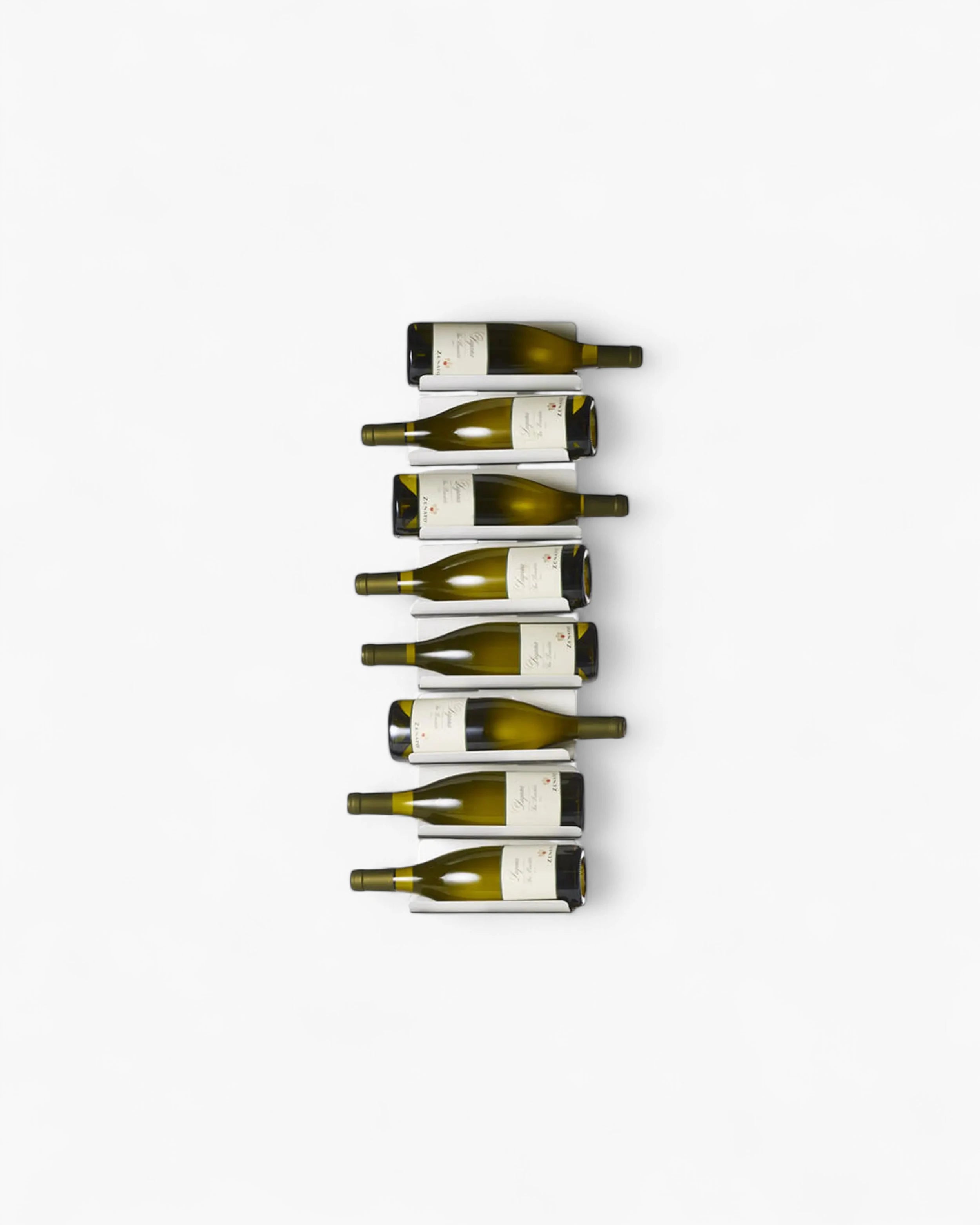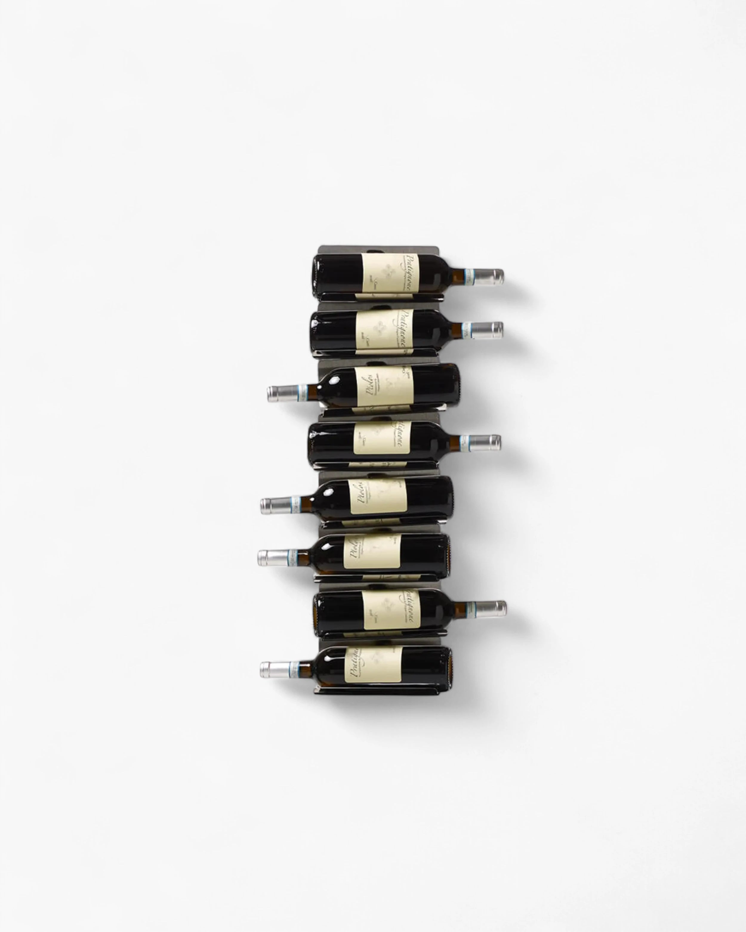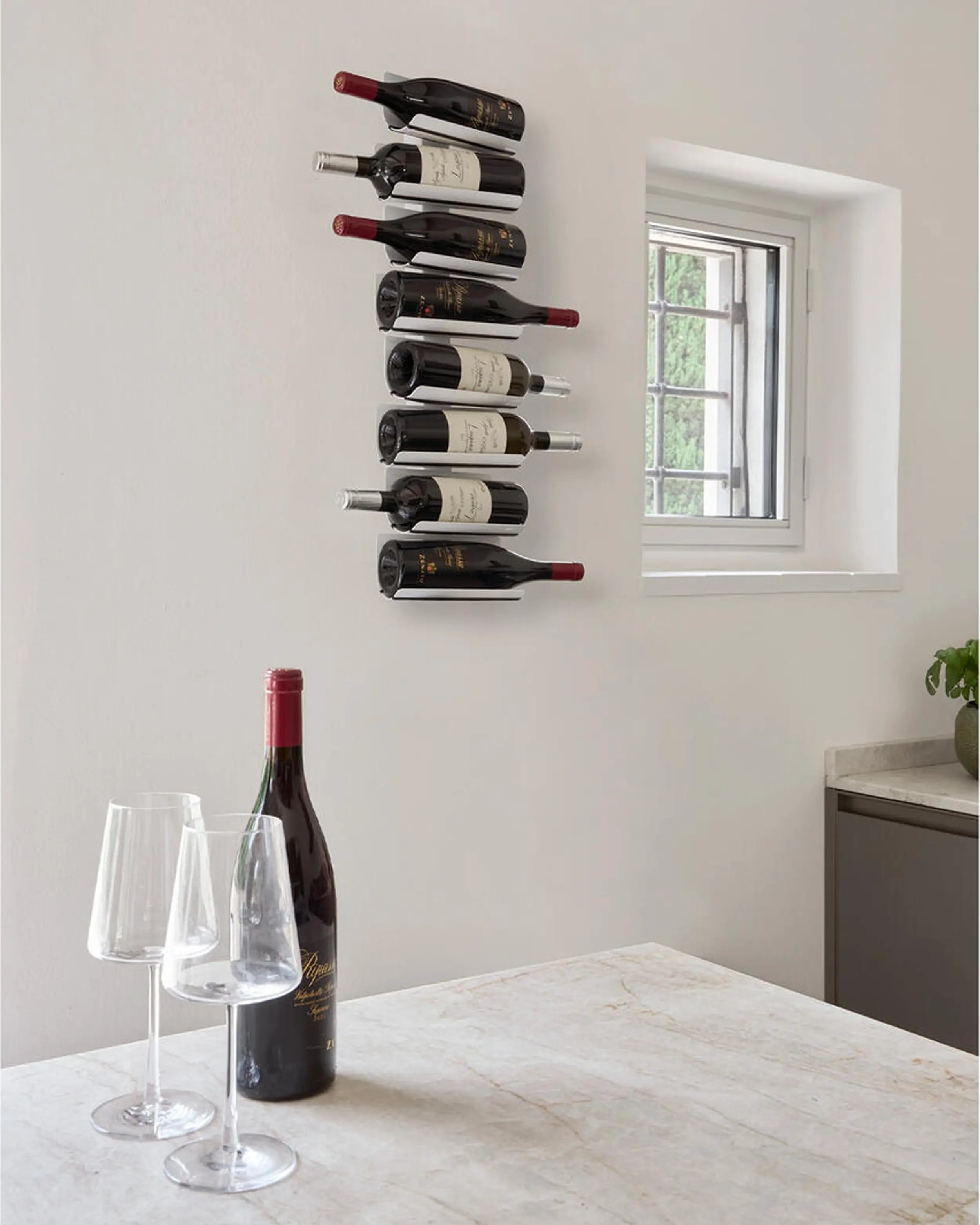 這款壁掛結構採用堅固鋼材製成,提供卓越穩定性,同時保持乾淨、簡約的輪廓。其層板配備可清洗的防滑彈性帶,確保每個酒瓶穩固安全。提供三種不同尺寸,依配置可容納 8 至 22 瓶,且因其模組化特性,允許無限組合。這是一個多功能解決方案,適用於不同類型的葡萄酒瓶,確保妥善存放與陳年,同時節省寶貴的地面空間。