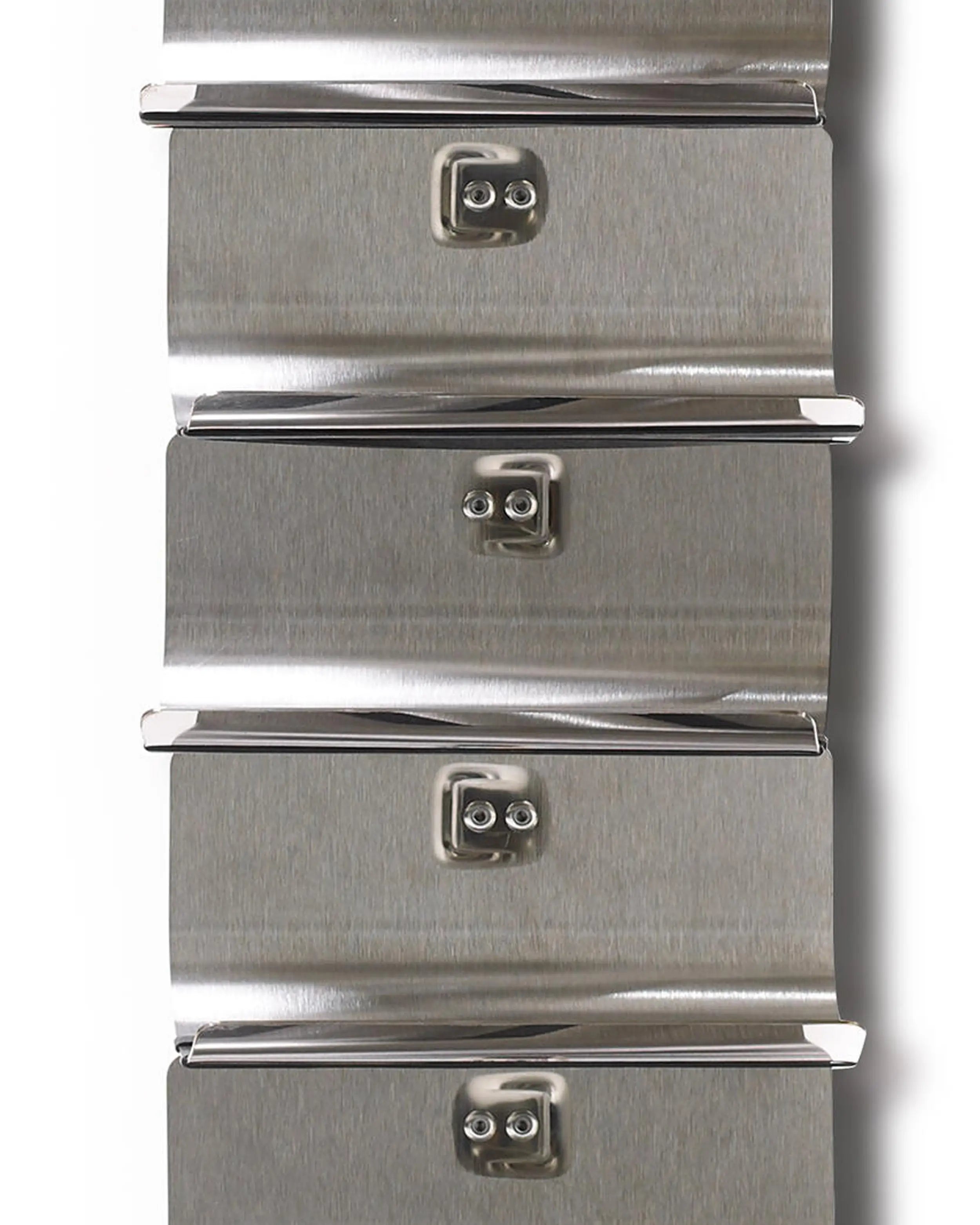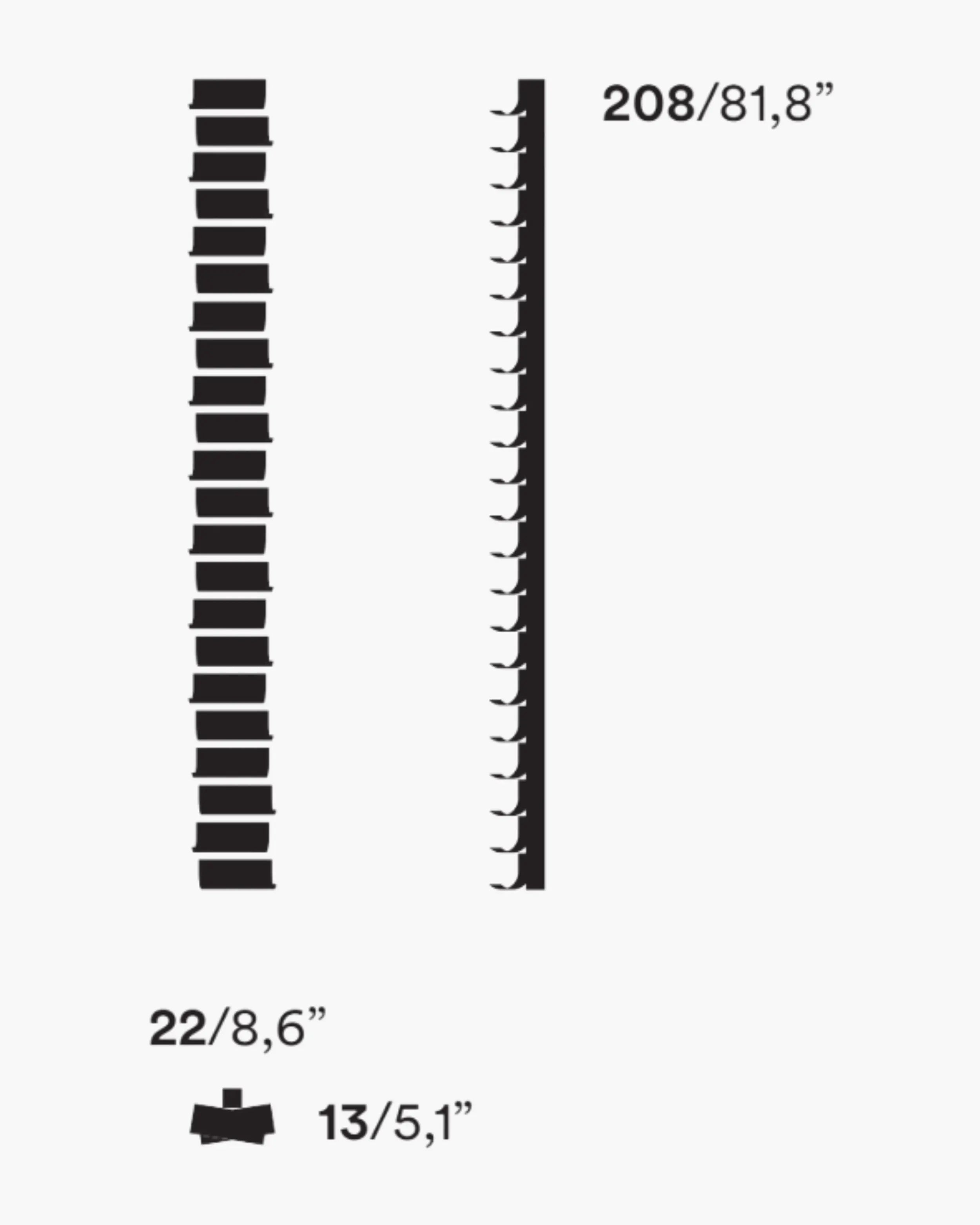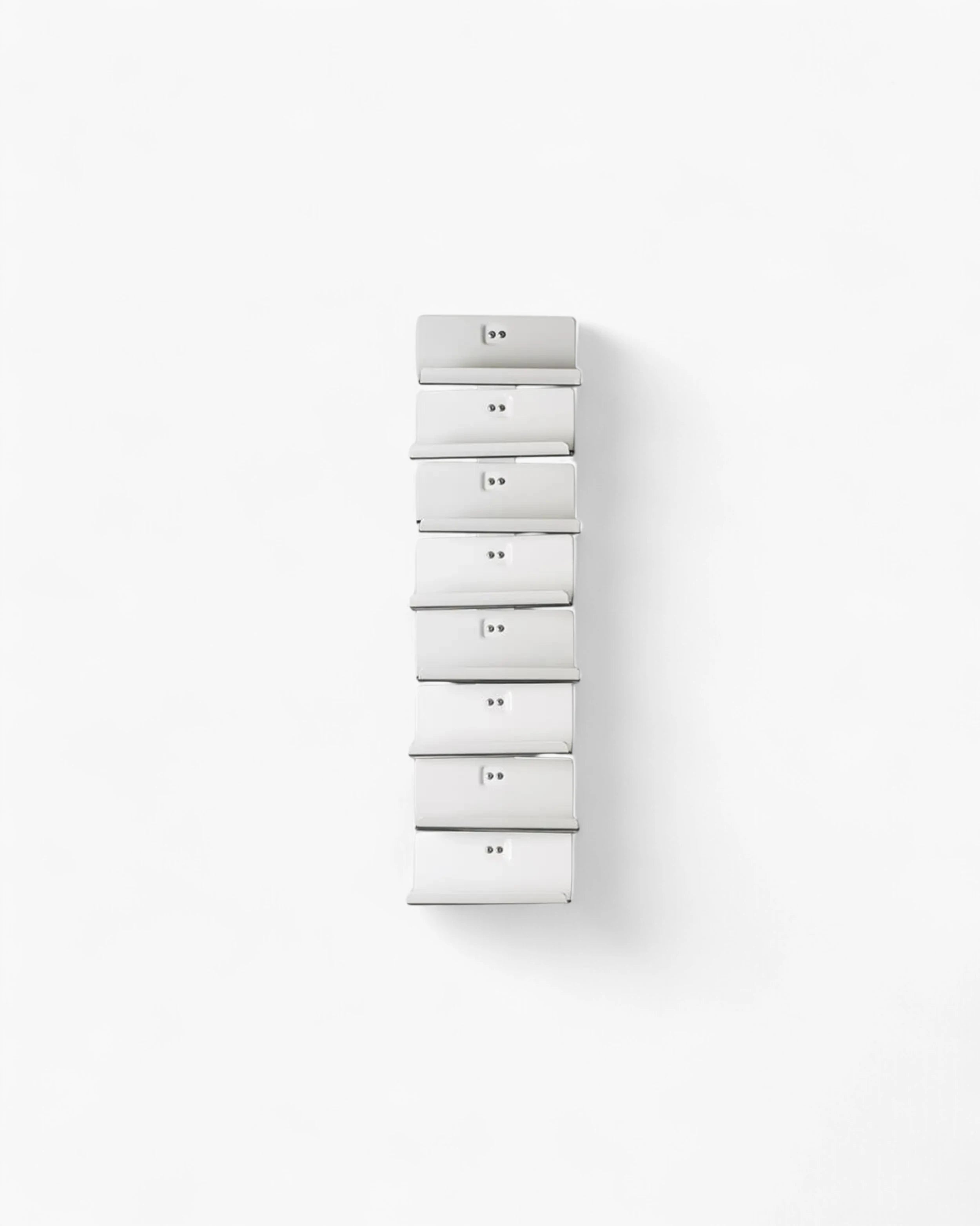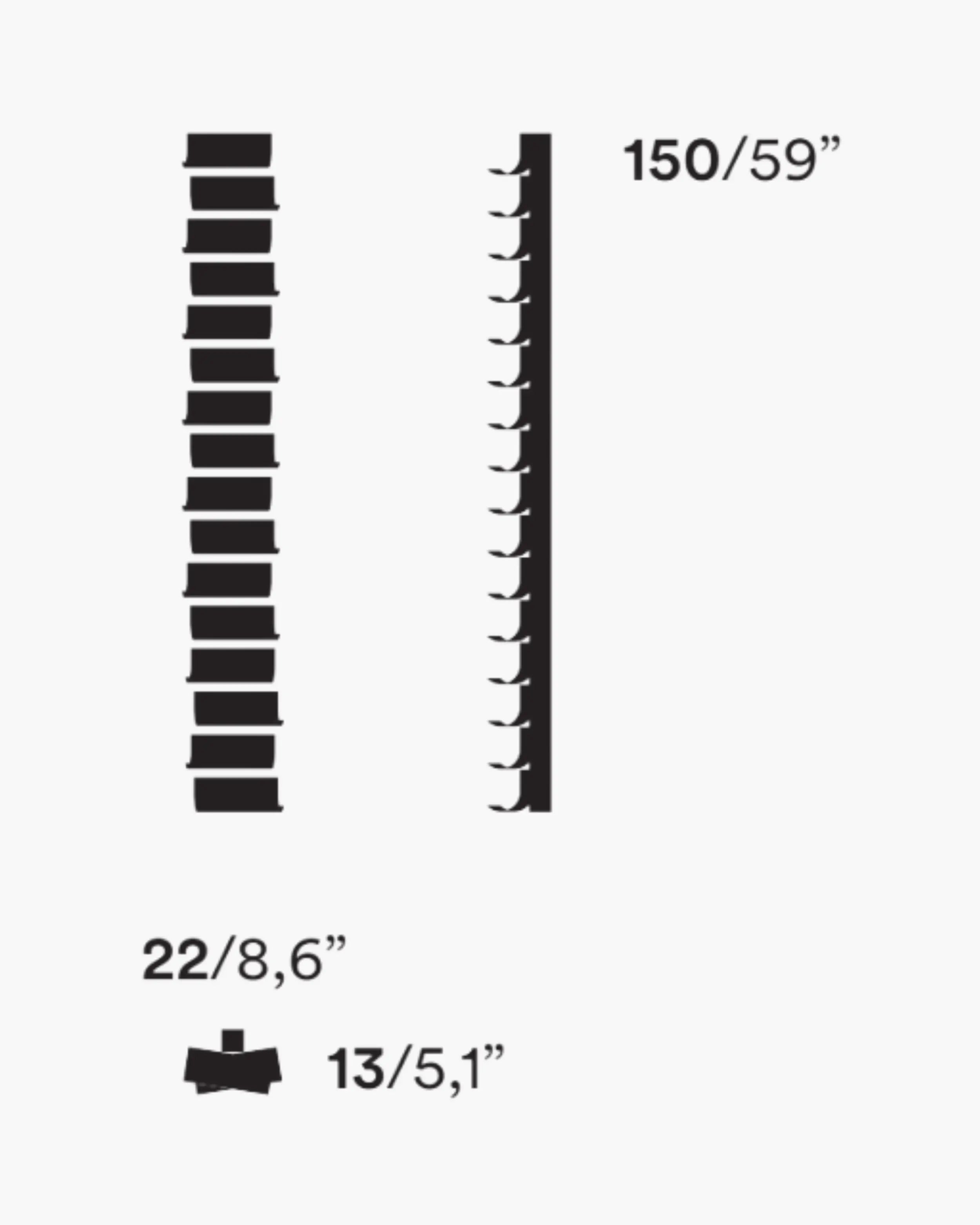 這款壁掛結構採用堅固鋼材製成,提供卓越穩定性,同時保持乾淨、簡約的輪廓。其層板配備可清洗的防滑彈性帶,確保每個酒瓶穩固安全。提供三種不同尺寸,依配置可容納 8 至 22 瓶,且因其模組化特性,允許無限組合。這是一個多功能解決方案,適用於不同類型的葡萄酒瓶,確保妥善存放與陳年,同時節省寶貴的地面空間。