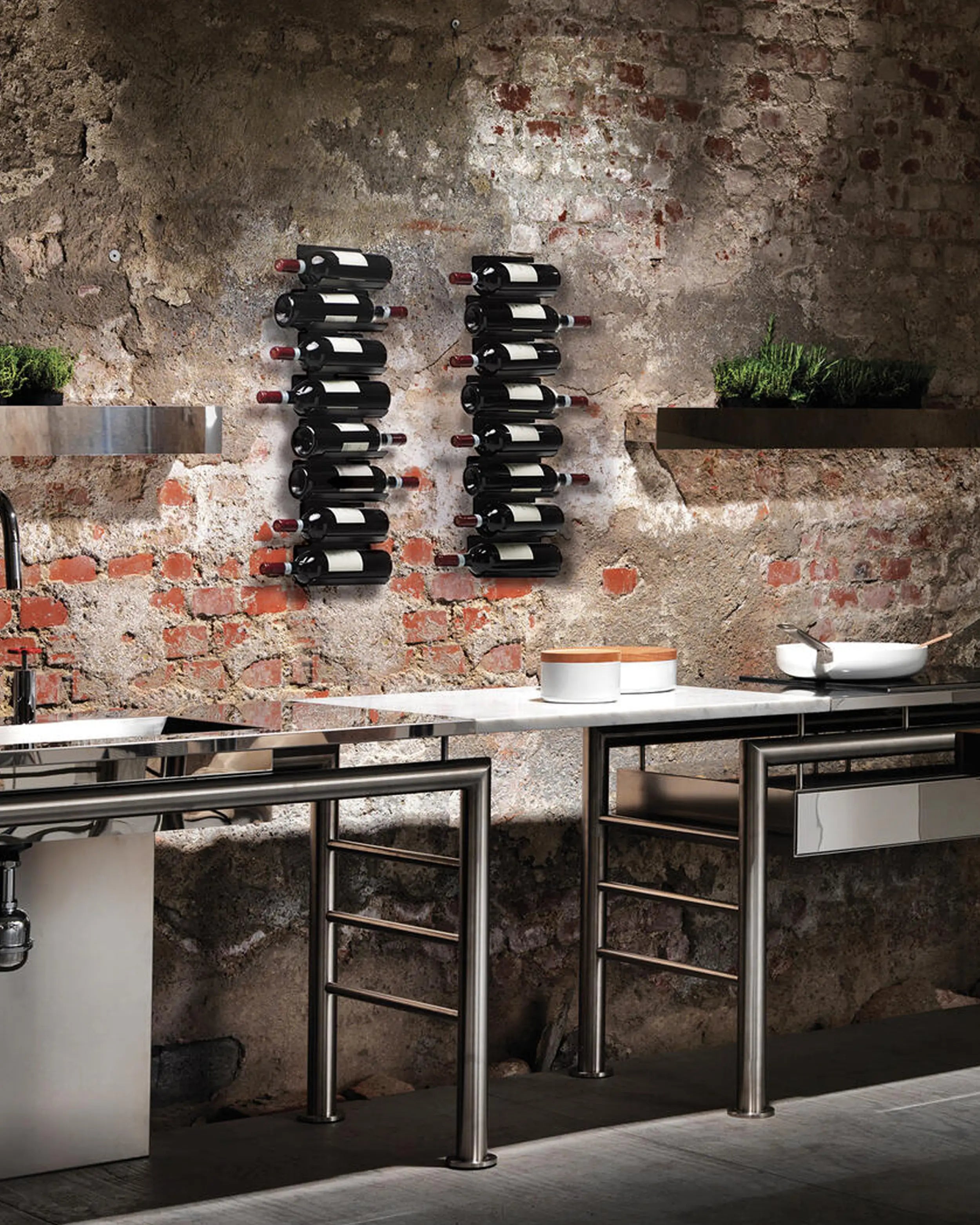 壁掛酒架,是一件優雅且模組化的「工具」,以輕鬆的姿態和義大利風格展示酒瓶。