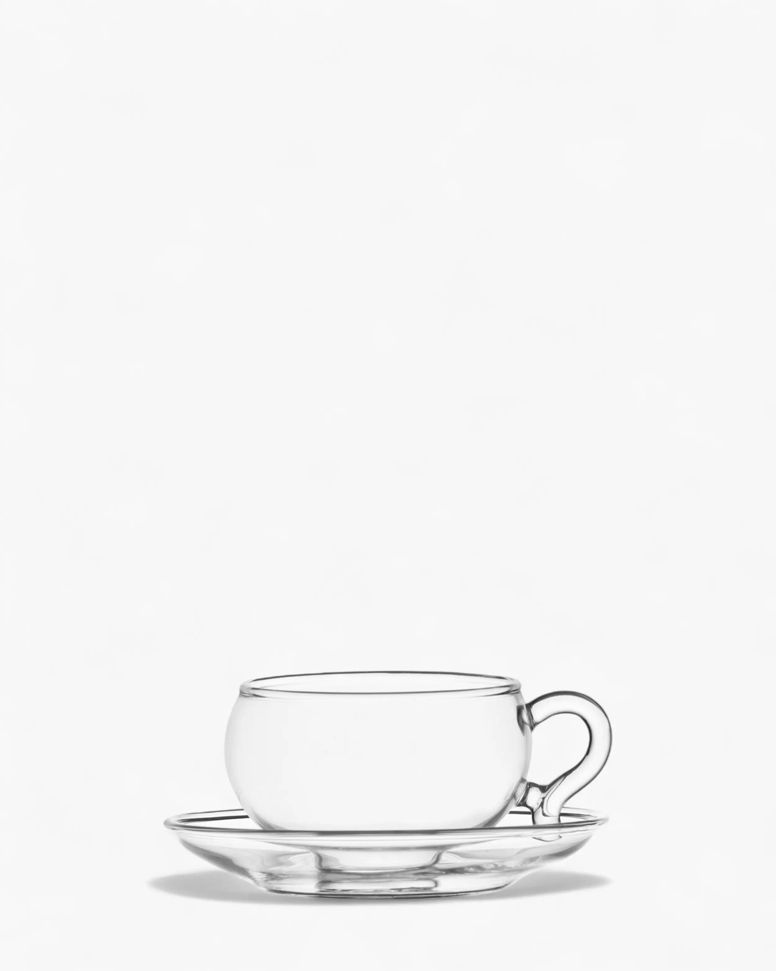 杯子與杯碟的每一個曲線都經過設計,以提升享用咖啡與茶的儀式感。纖薄卻耐用的硼矽玻璃展現濃郁的濃縮咖啡或茶色澤,使飲品本身成為視覺設計的一部分。可於低溫(建議40 °C/104 °F)洗碗機清洗,結合手工品質與日常實用性。無論是安靜的早晨時光,或與朋友共享咖啡或茶,此套裝都將簡單的飲用行為昇華為優雅的體驗。