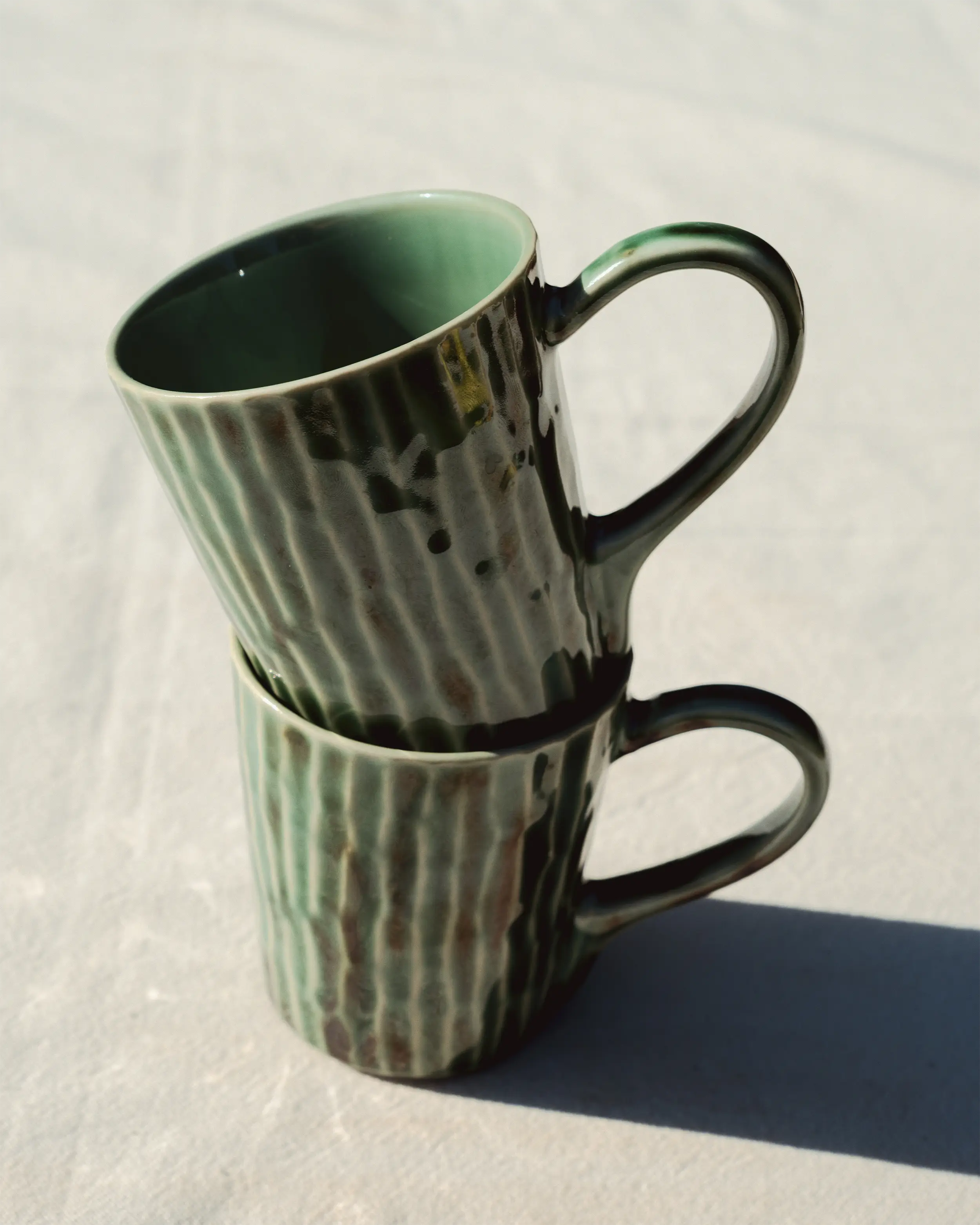 搭配來自plates, bowls and cups with saucers的Verde Lanza collection,Serax Verde Lanza tea cup完成了一個連貫的系統。這些作品共同形成了釉面石器餐具,體現了 Pascale Naessens 致力於創造根植於真誠與自然平衡之美的承諾。