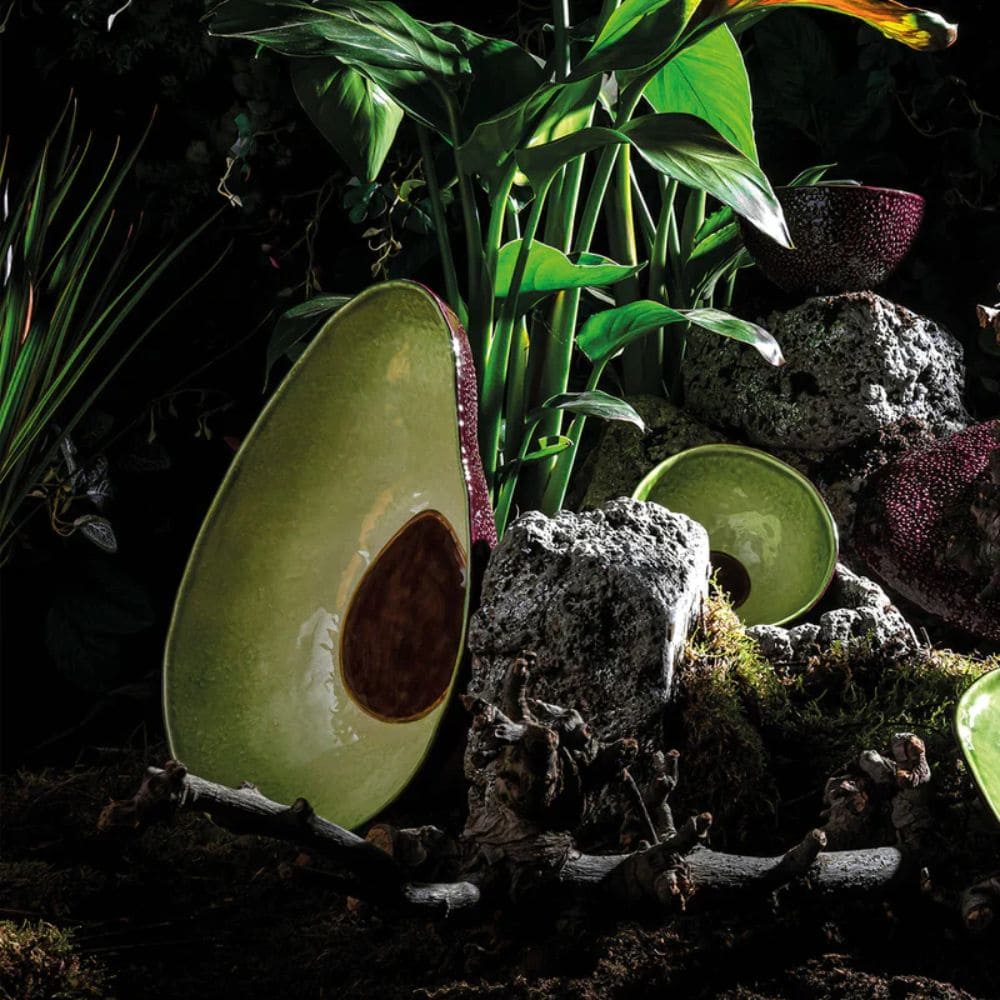 The bowl from Tropical Fruits collection comes in a series of striking designs: Passion Fruit, Avocado, and Coconut, each celebrating a different tropical flavor and form. Passion Fruit enchants with its rich purple hue and golden pulp details; Avocado surprises with organic greens and sculpted texture; Coconut exudes a serene, creamy tone that brings calm to vibrant tablescapes. Together, they create a joyful symphony of color and pattern that enlivens any dining experience, blending nature’s beauty with modern design.