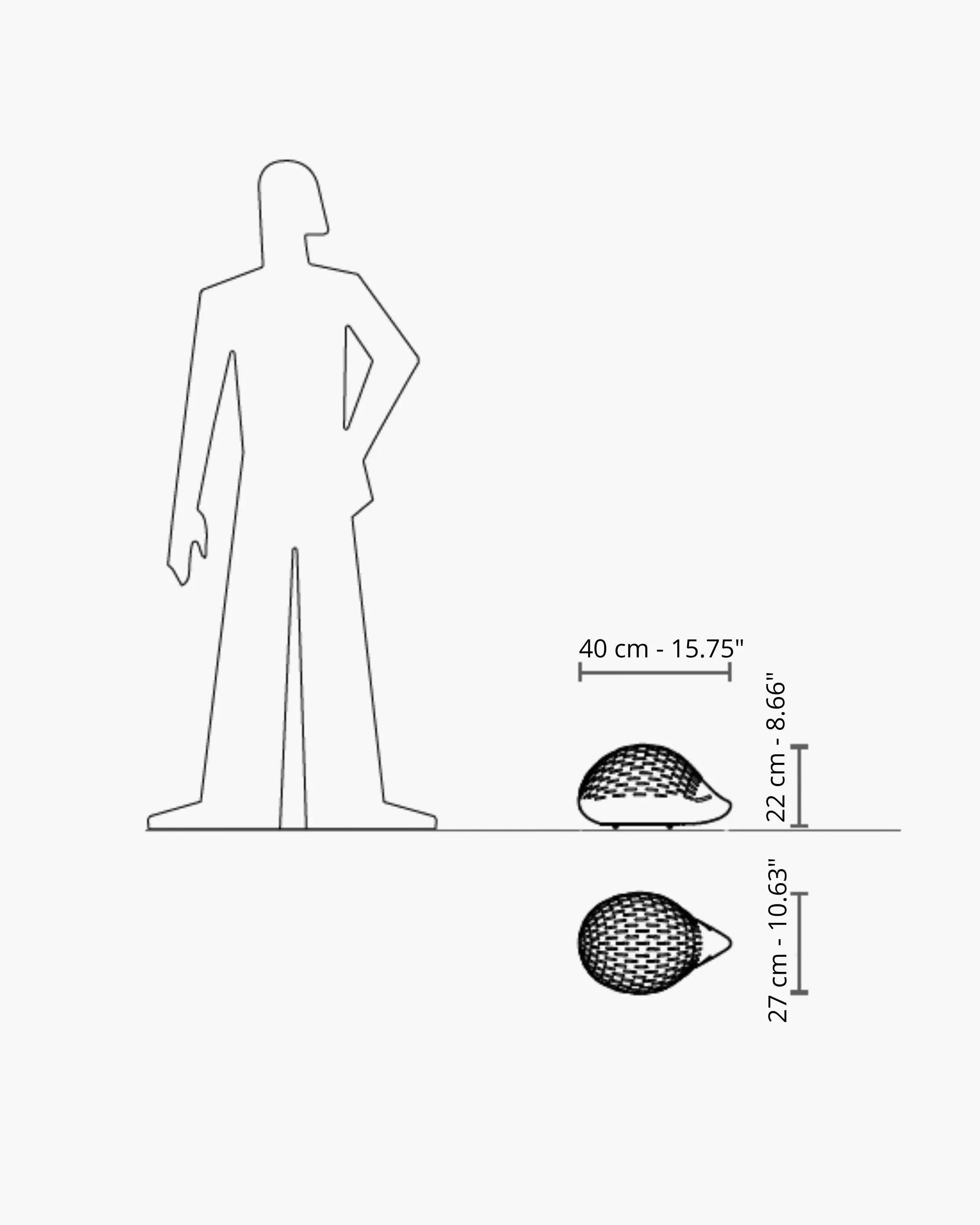 Bonnie 提供多種經典 Serralunga 肤色:深陶土色、鴿灰色、橄欖色、石色、淺藍色及耐候鋼色。每種肤色帶來不同氛圍,使這款 俏皮的戶外雕塑 能與多樣景觀、建築風格及室內設計方案和諧搭配。從明亮活潑的庭院到精緻的露臺或室內設計角落,這個色彩組合確保刺蝟裝飾既可成為焦點,也能襯托其他裝飾元素。