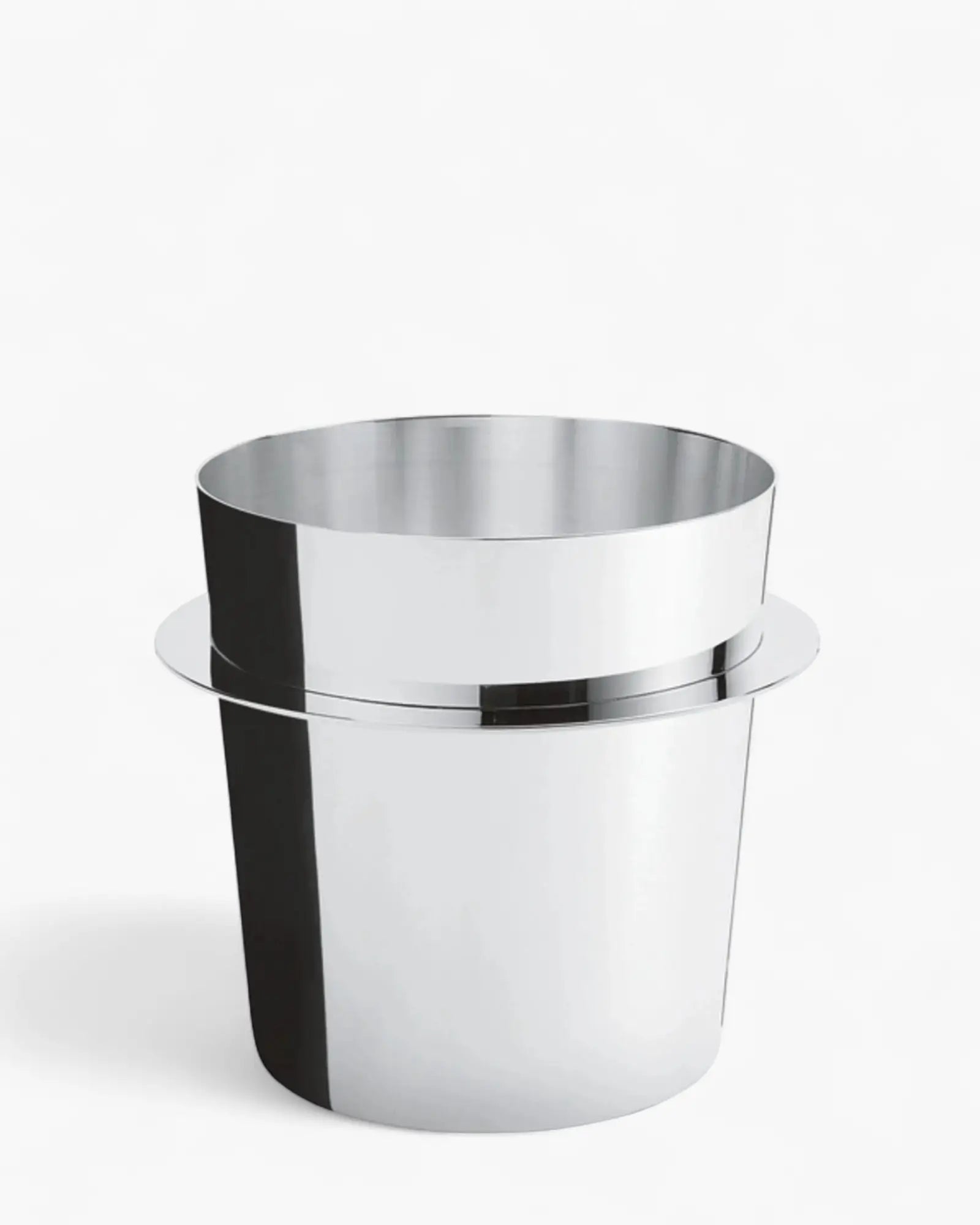 這款 香檳冰桶 擁有寬敞的桶身和外翻的邊緣,輕鬆容納冰塊和多瓶 香檳或優質葡萄酒。其 符合人體工學的側把手 確保握持舒適且穩固,而寬大且有重量的底座則在任何表面上提供穩定性。鏡面拋光的銀色表面捕捉環境光線,無論是在陽光下的泳池邊或燭光下的餐桌旁,都為場景增添華麗感。