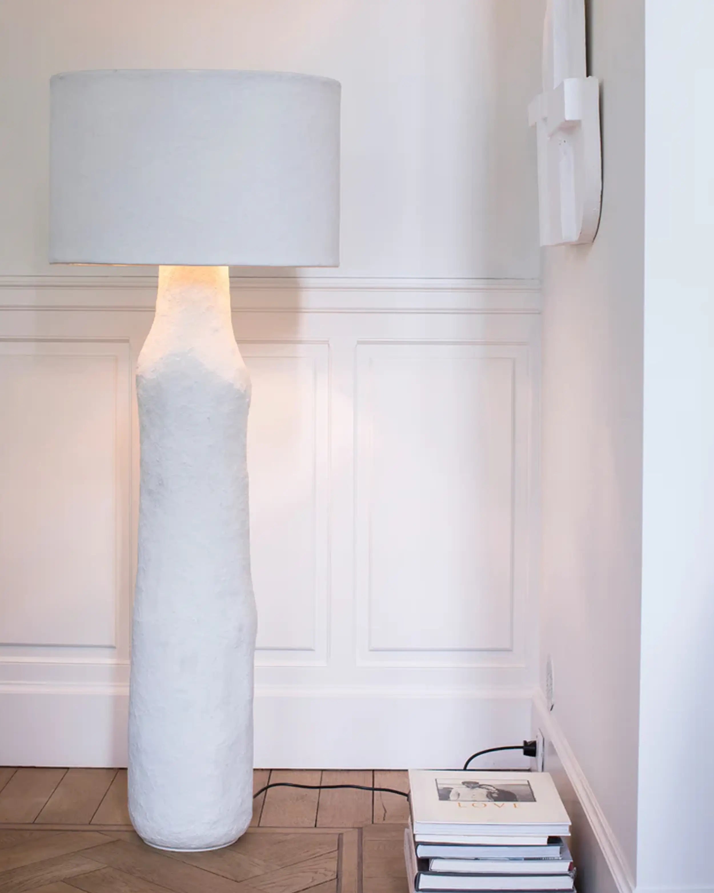 探索 Marie Michielssen 的簡約家居裝飾,包括適合現代生活空間的標誌性地球落地燈和 Pawn 邊桌​​。