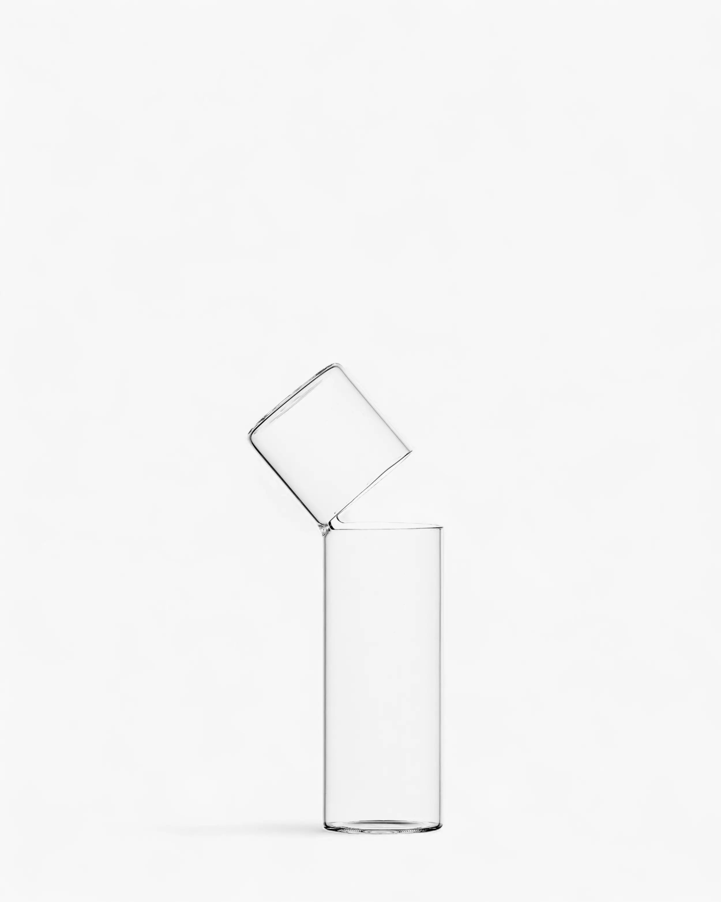 Attesa belongs to Ichendorf and bears the signature sensibility of Denis Guidone. Each piece is crafted in handmade and lampworked borosilicate glass, worked over the flame to achieve a luminous surface and a perfectly polished rim. The precision of the process delivers a vase that feels featherlight yet poised, inviting water, stems and light to draw their own geometry inside the cylinder.