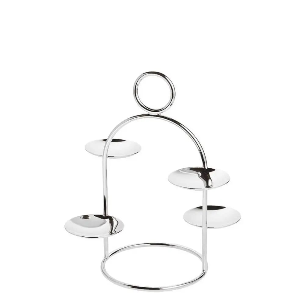 由Sambonet打造,此架以中央軸心設計,均勻分配各層重量。直徑5.5公分的小盤穩固置於框架內,確保使用時的穩定性。作為一款奢華小點心擺盤架,它兼具細膩與結構堅固,允許移動而不失穩定。可用洗碗機清洗的設計兼顧實用性,同時保持拋光鋼面的清晰質感。