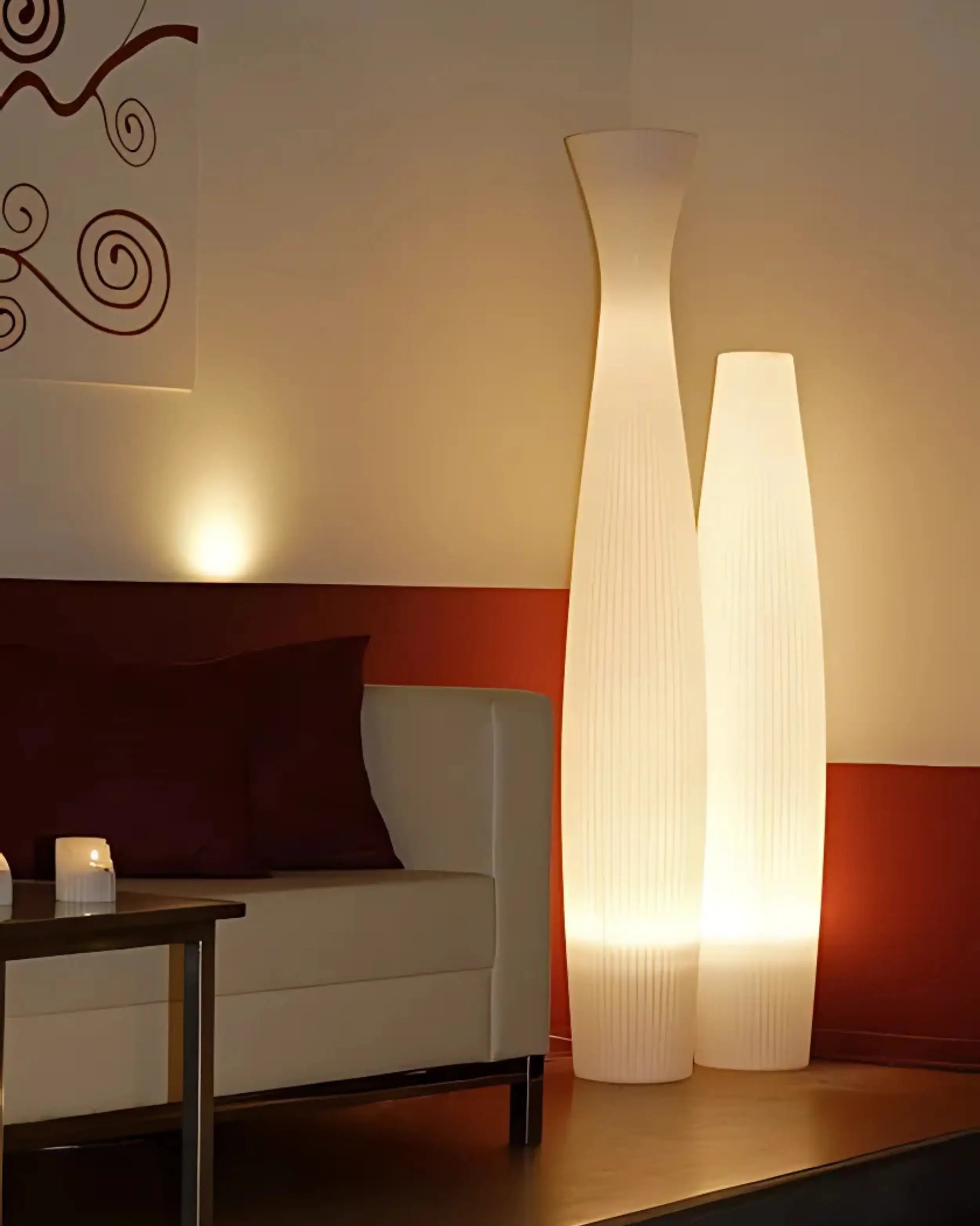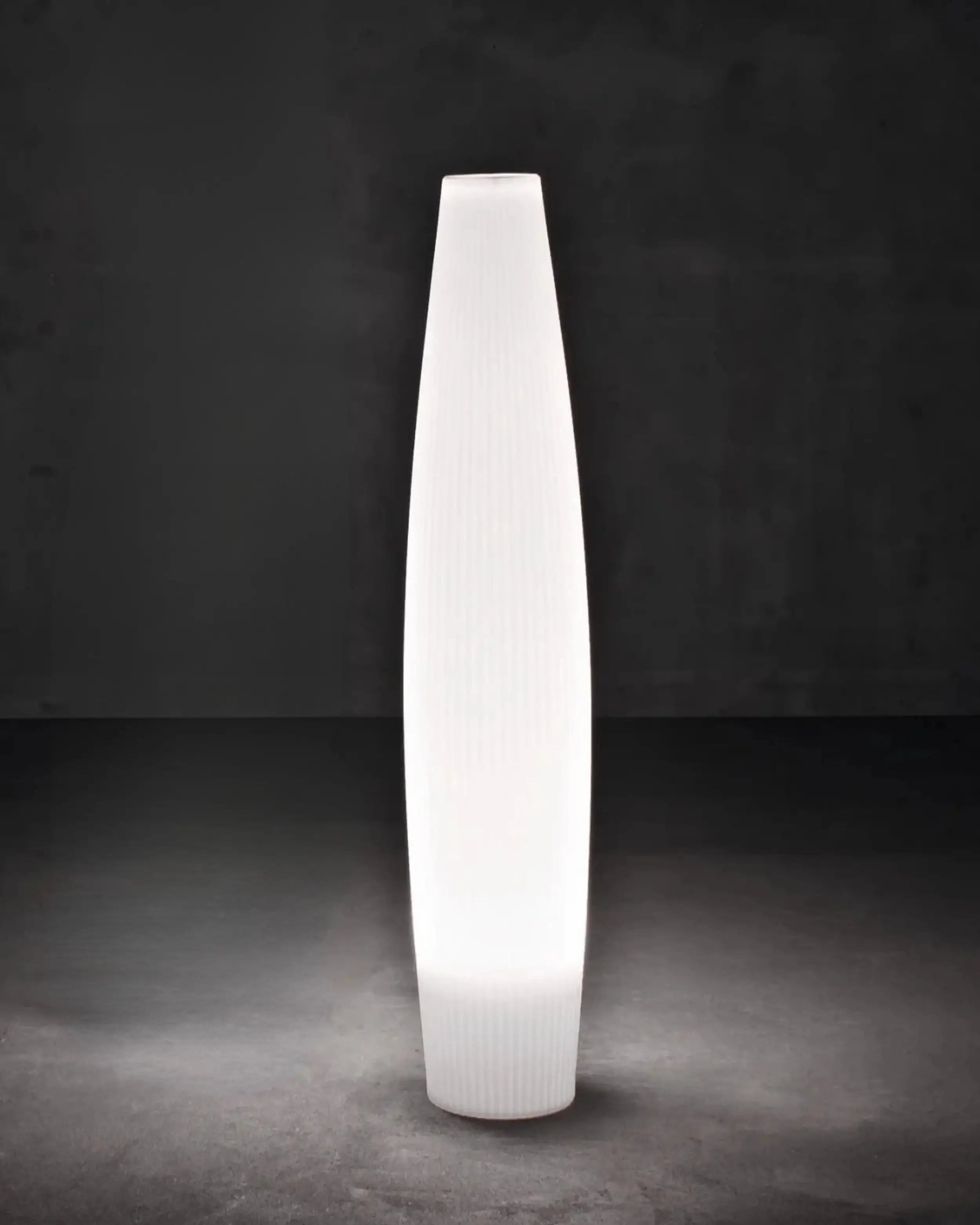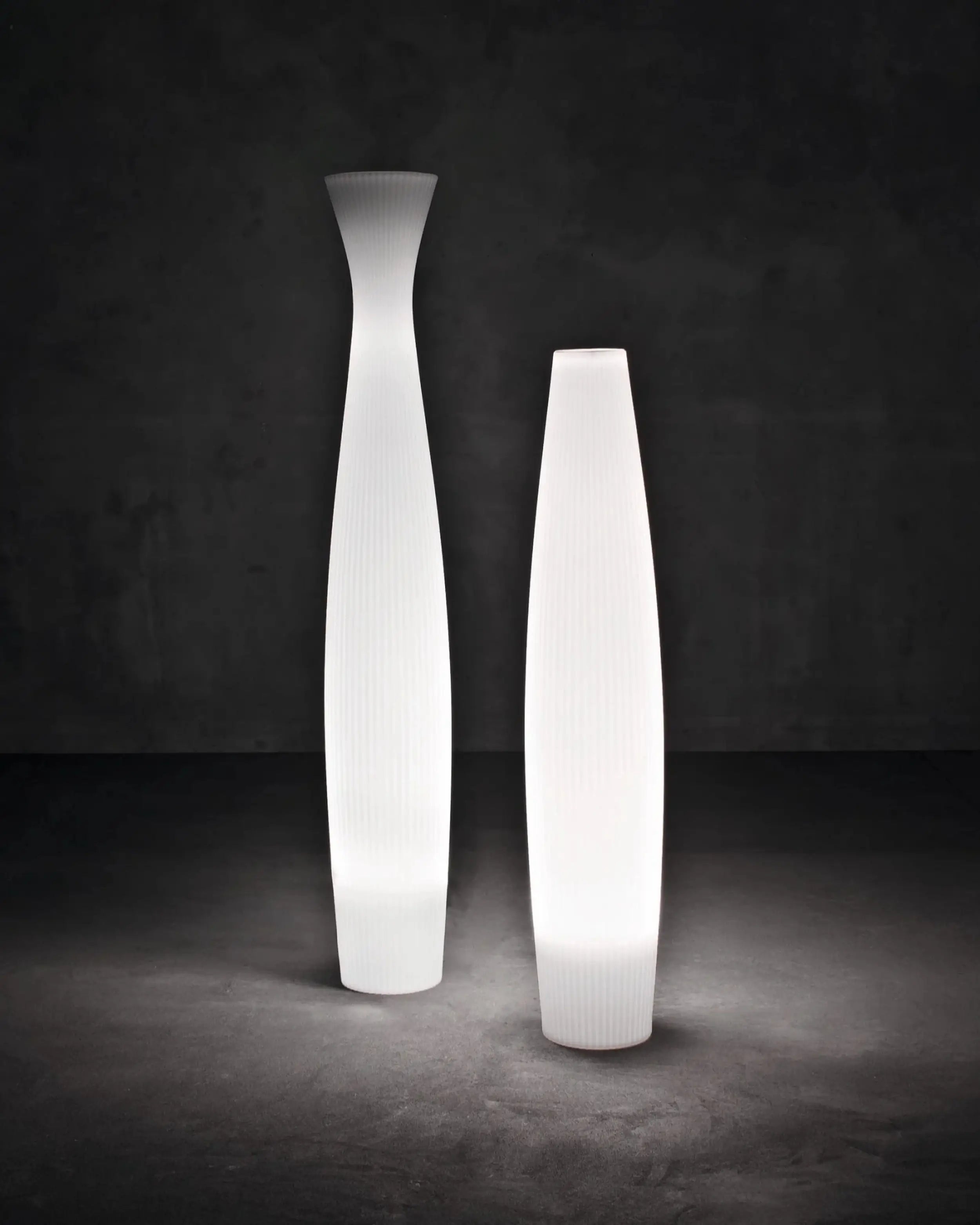 提供兩種高度,140 公分和 180 公分,Scarlett 適應多樣環境。較高款式作為入口區或酒店大廳的壯觀存在,而較小款則適合露台、庭院或私密休息角落。兩者均保持比例、功能與現代花園花盆的優雅平衡。Serralunga 帶燈花盆 可與 Serralunga 家具 無縫搭配,同時也能融入 Ibride 藝術家具、Gufram 標誌性室內裝飾 或 Pedrali 戶外系列。其發光的本體作為私人住宅或合約項目精心策劃的戶外方案中的核心特色。