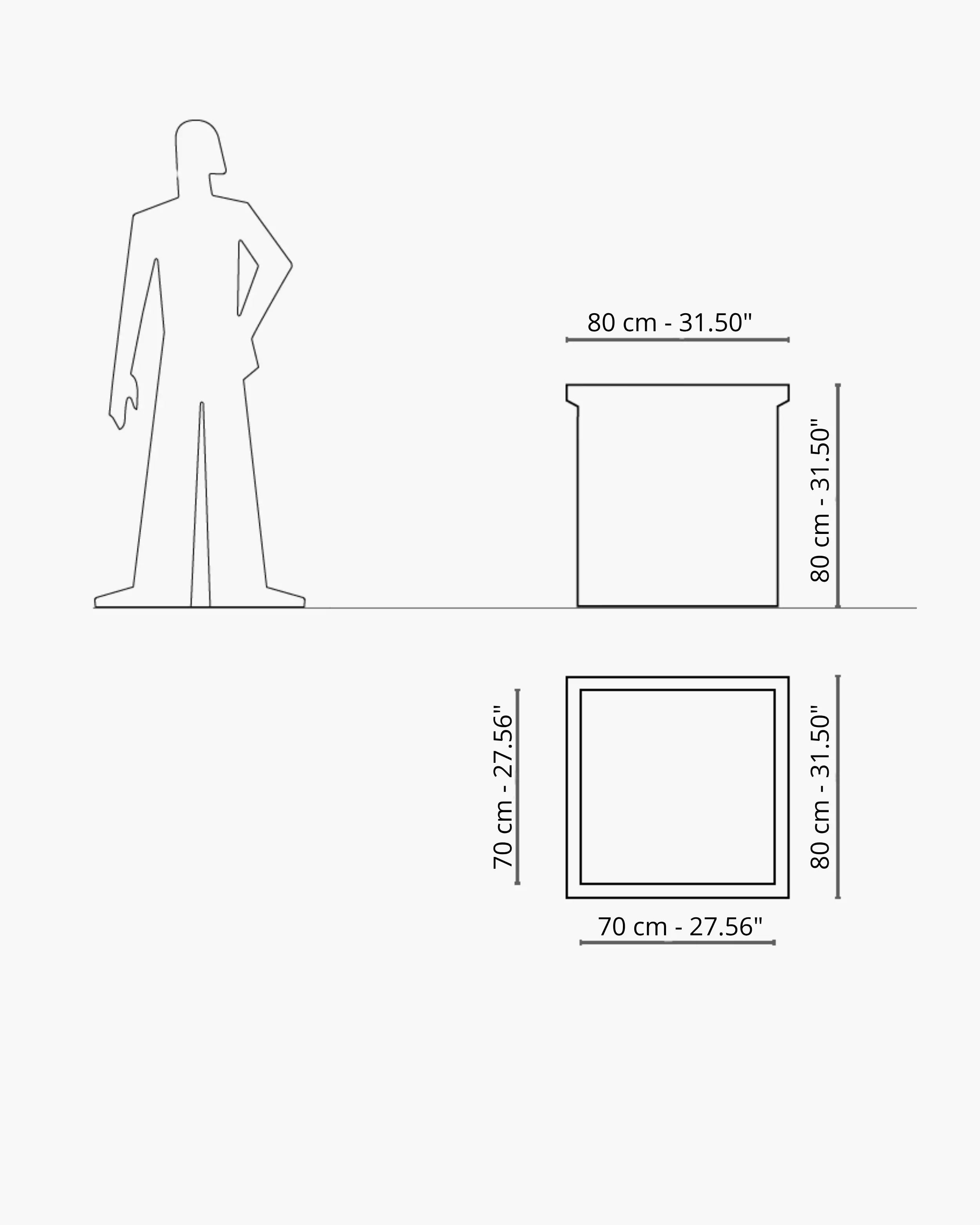 此款 方形豪華花瓶 提供60及80公分兩種高度,適應不同建築場景。其色彩包括經典的 Serralunga 色調:白色、深灰色、灰色、鴿灰、陶土色及深陶土色;這些色調可將其從低調的建築點綴轉變為大膽的 花園建築花瓶。大地色調強調傳統,而中性色調則突顯其現代極簡風格。
