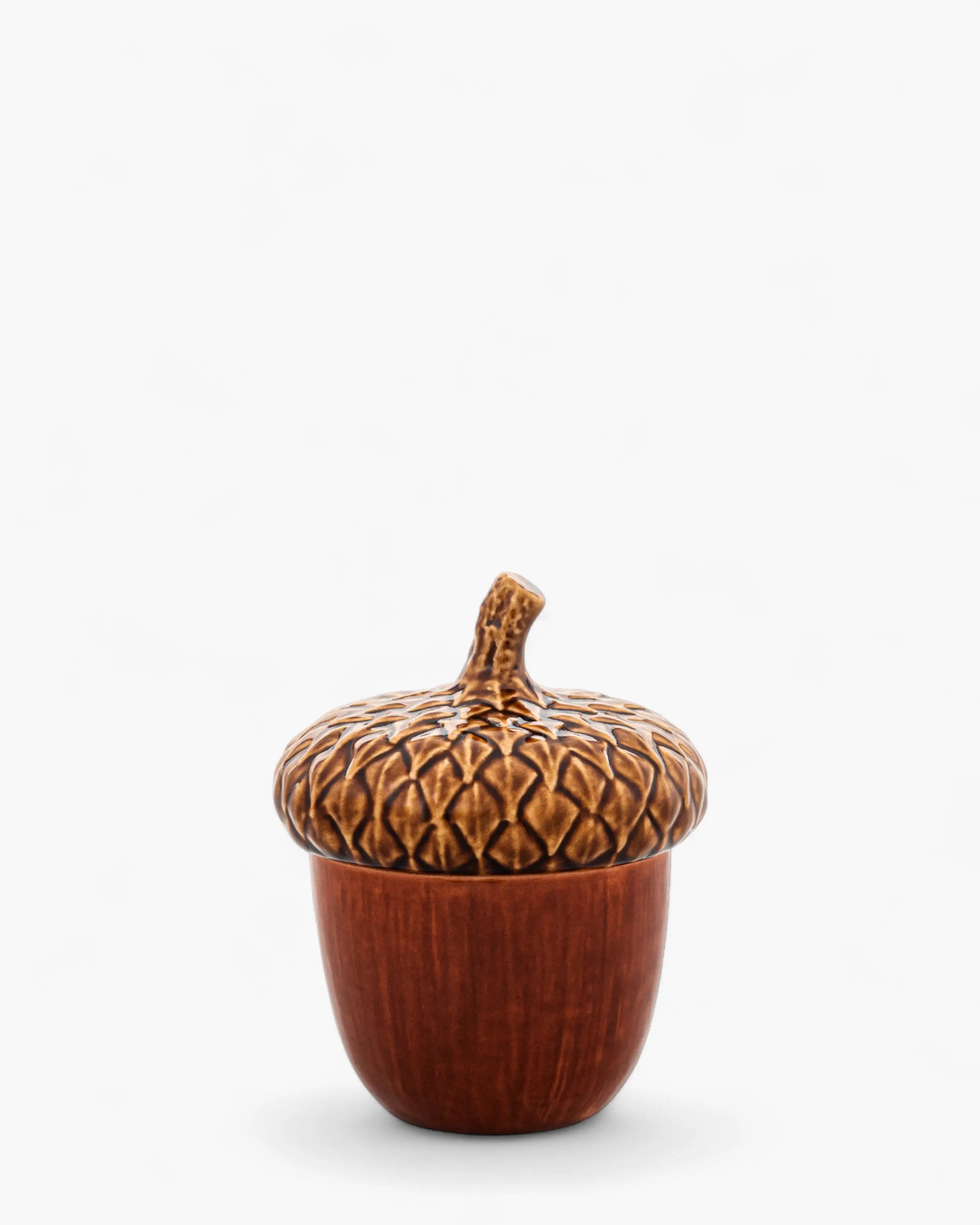 Though conceived as a decorative object, the acorn box is equally functional. It adapts to contemporary lifestyles, though like all handmade ceramics it benefits from gentle care. The lid fits securely, preserving sweets, sugar, or keepsakes, while the sculptural profile ensures it maintains presence even when not in service. These thoughtful details guarantee that it remains reliable in daily use.