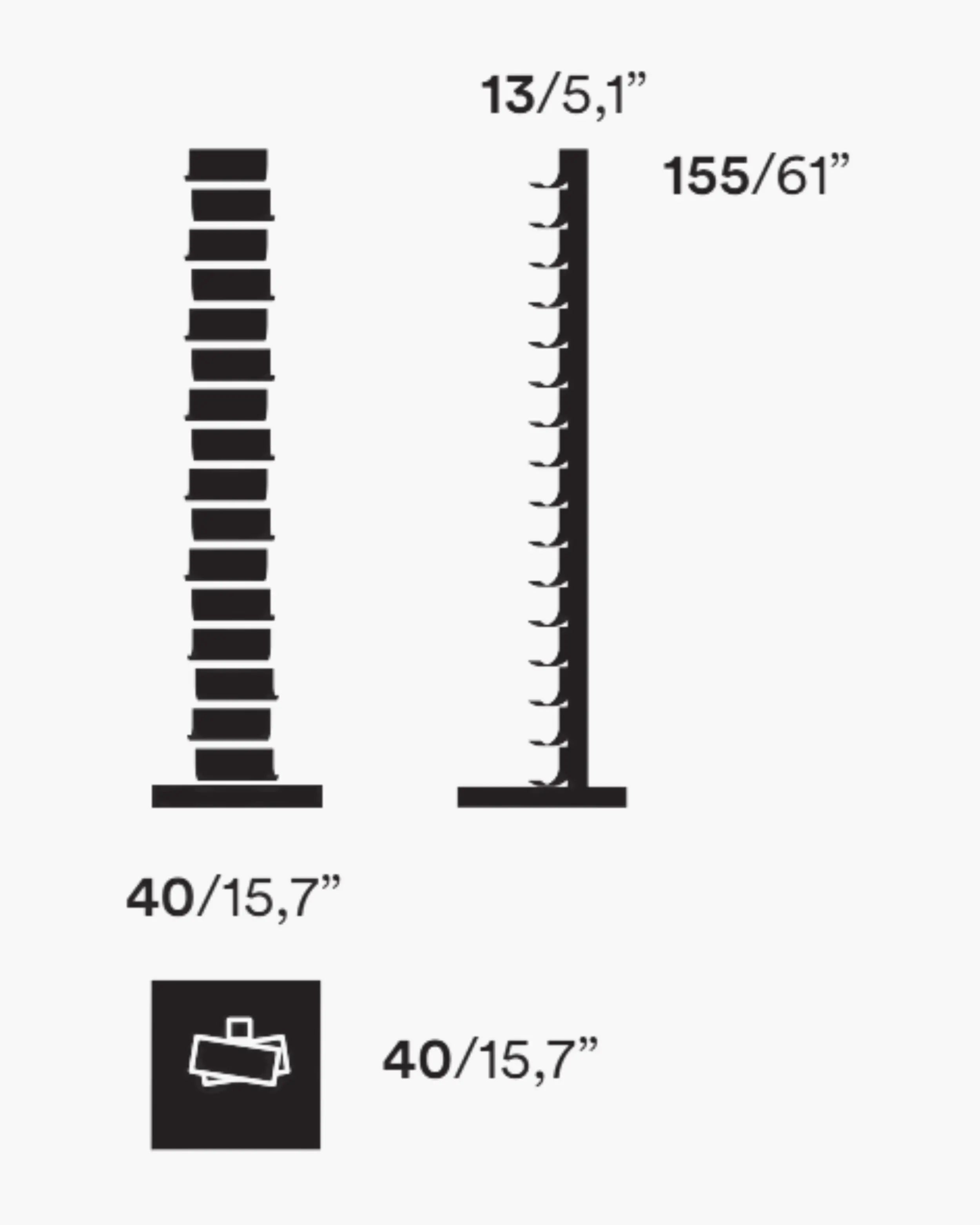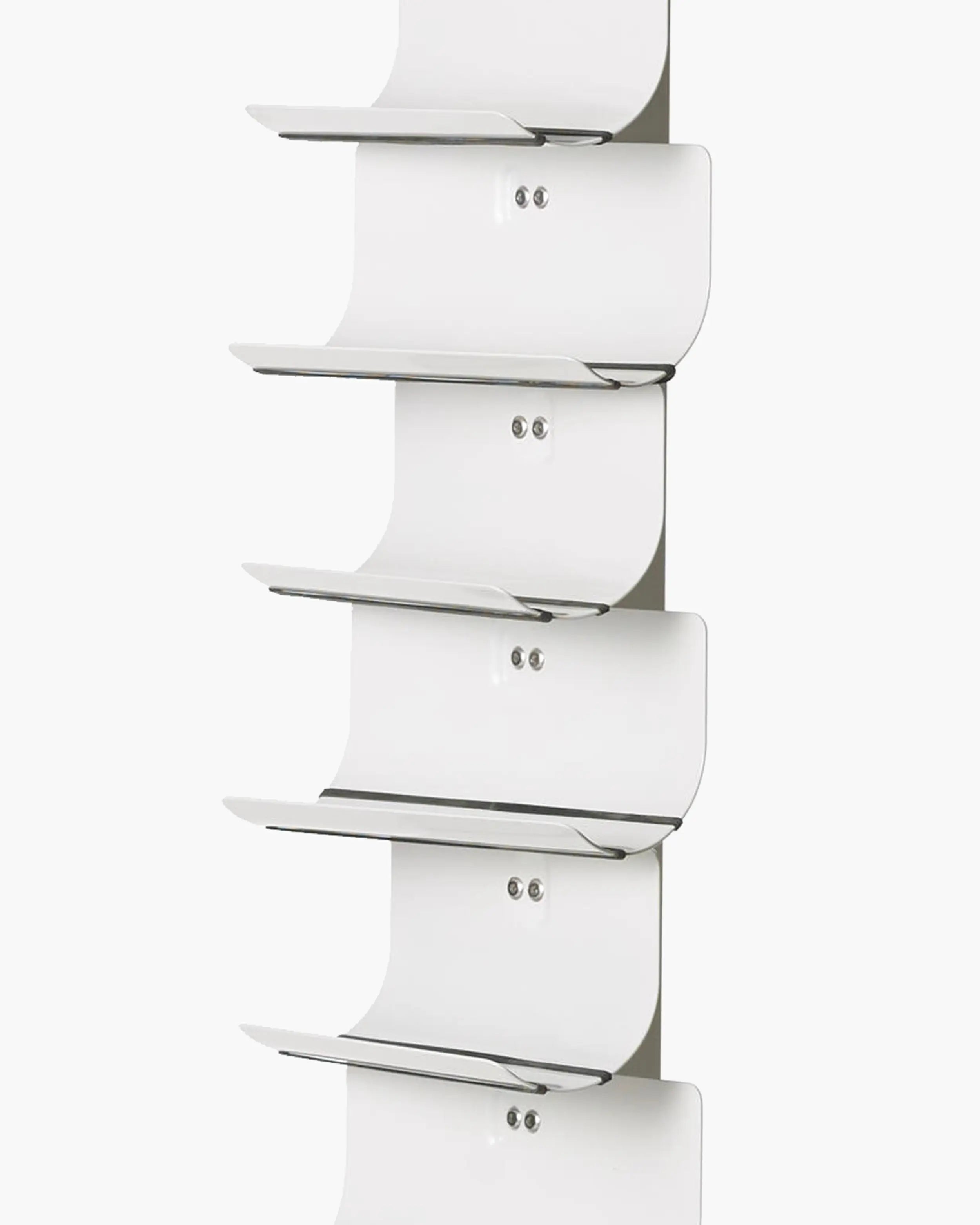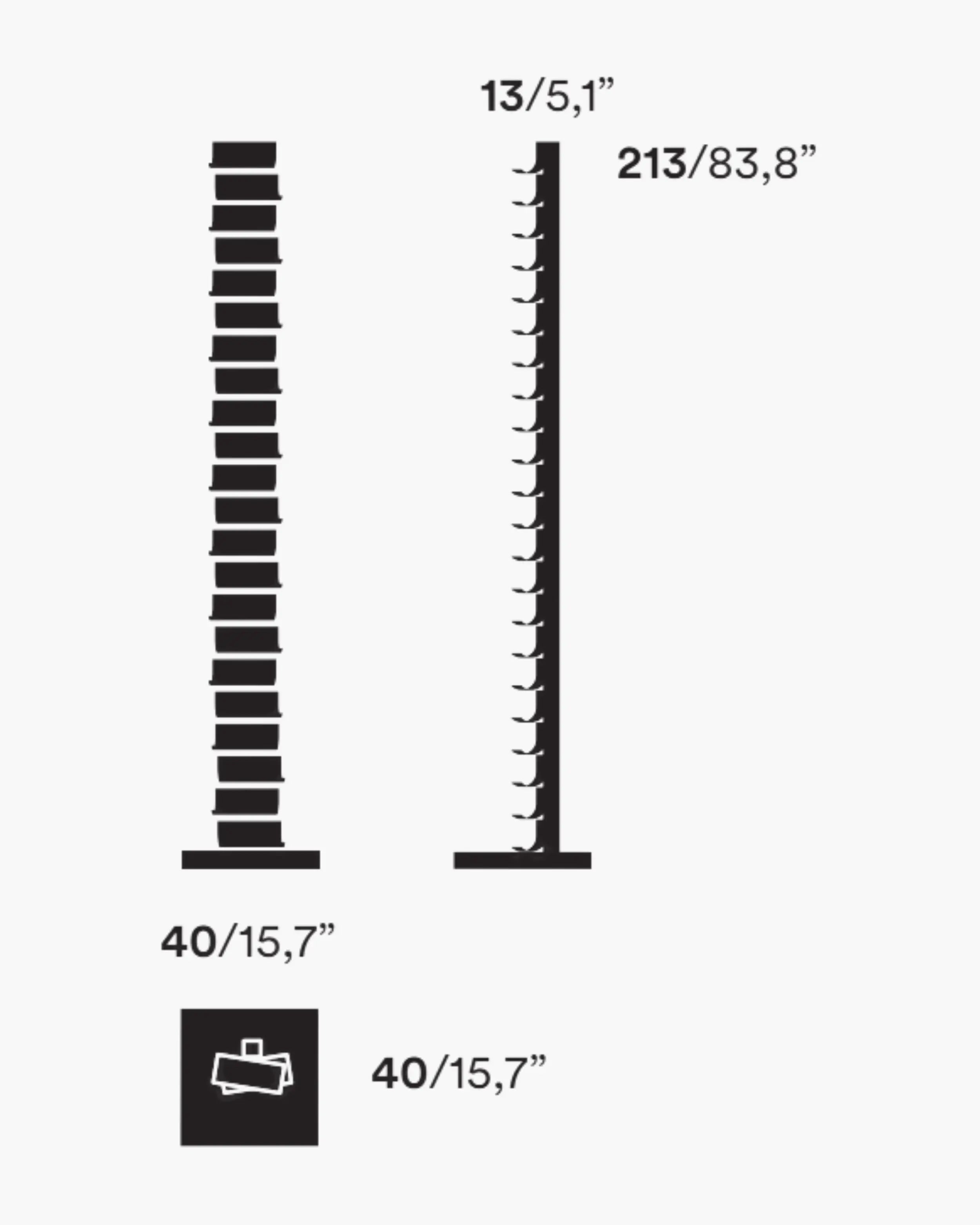 Crafted entirely in steel, this vertical free-standing structure is engineered with precision. It features adjustable feet for perfect balance, even on uneven floors, and shelves equipped with washable slip-proof elastic bands to ensure maximum stability. The engraved designer’s signature on the base enhances its collectible appeal, while its two available formats allow for storage of up to 8, 16 or 22 bottles. Its sculptural presence makes it an unmistakable example of how