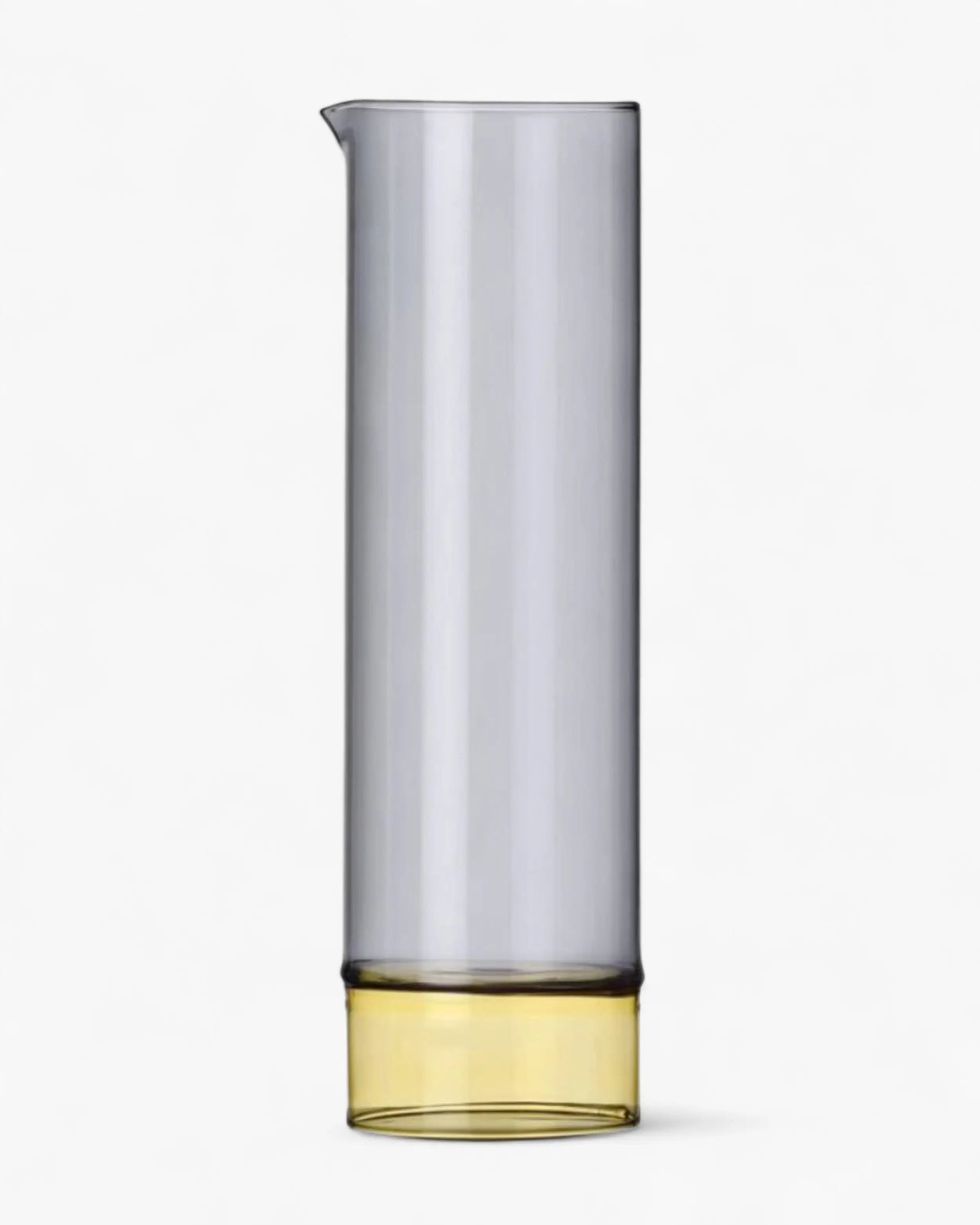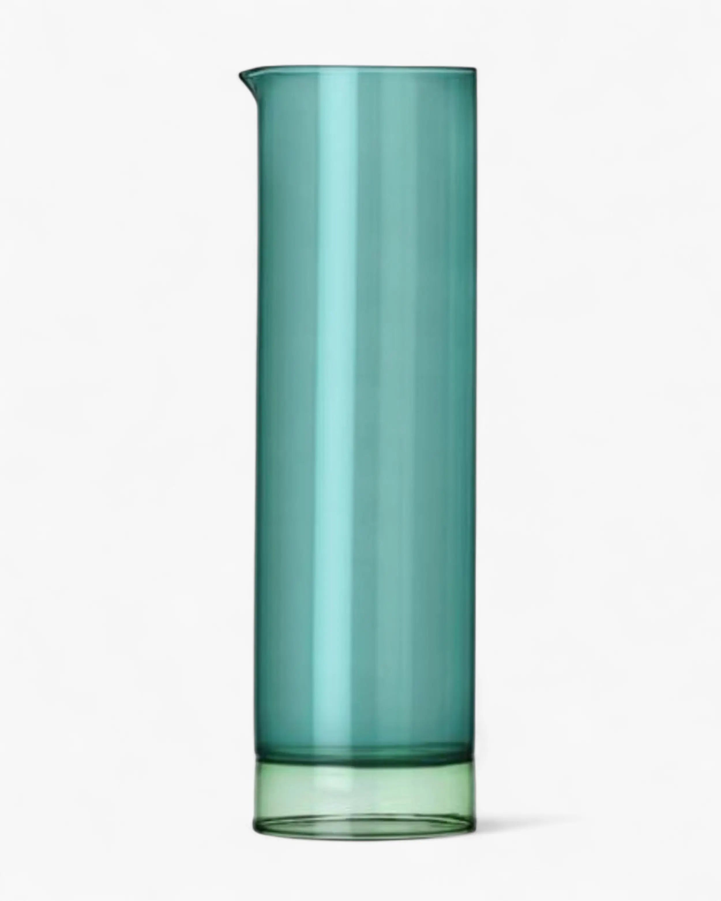 Available in elegant tones of light blue, green and smoke, the jug adds a chromatic accent to everyday rituals. Each combination, whether petrol and mint or yellow and smoke, introduces a refined balance of contrast and depth. It pairs gracefully with Ichendorf stemmed glasses, iconic tumblers and glasses, and the Botanica collection, creating a dialogue between nature-inspired shapes and minimalist modern glassware.