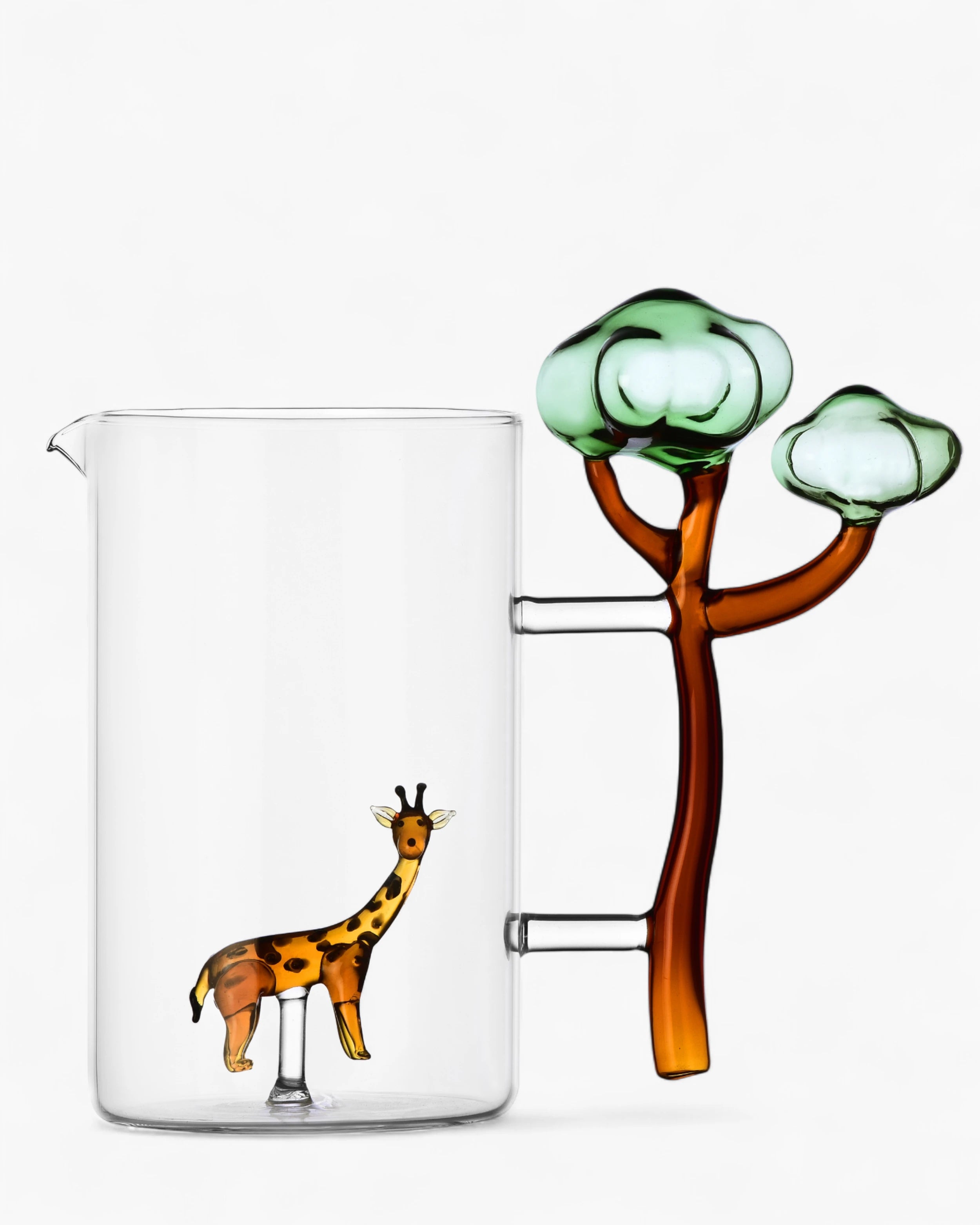 Each Ichendorf jug is shaped by skilled artisans using traditional lampworking techniques. This meticulous process gives life to the miniature giraffe and baobab, ensuring every detail is unique. The glass, thin yet resistant, maintains its brilliance over time and is dishwasher safe at low temperatures (40 °C/104 °F recommended). What could be a simple jug becomes instead a collectible piece of storytelling glassware.Design that animates daily life