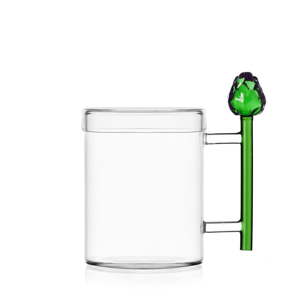 Handmade and flame-worked in borosilicate glass, the Vegetables mug with lid reflects the delicate craftsmanship behind the entire Ichendorf collection. The mug’s rounded body, smooth handle and playful lid are shaped through patient gestures over flame, resulting in a piece that balances lightness with resilience. Borosilicate glass is naturally resistant to thermal changes, making the mug ideal for hot drinks, herbal teas or aromatic infusions. Dishwasher safe at low temperatures, it maintains its clarity and softness of line over time.