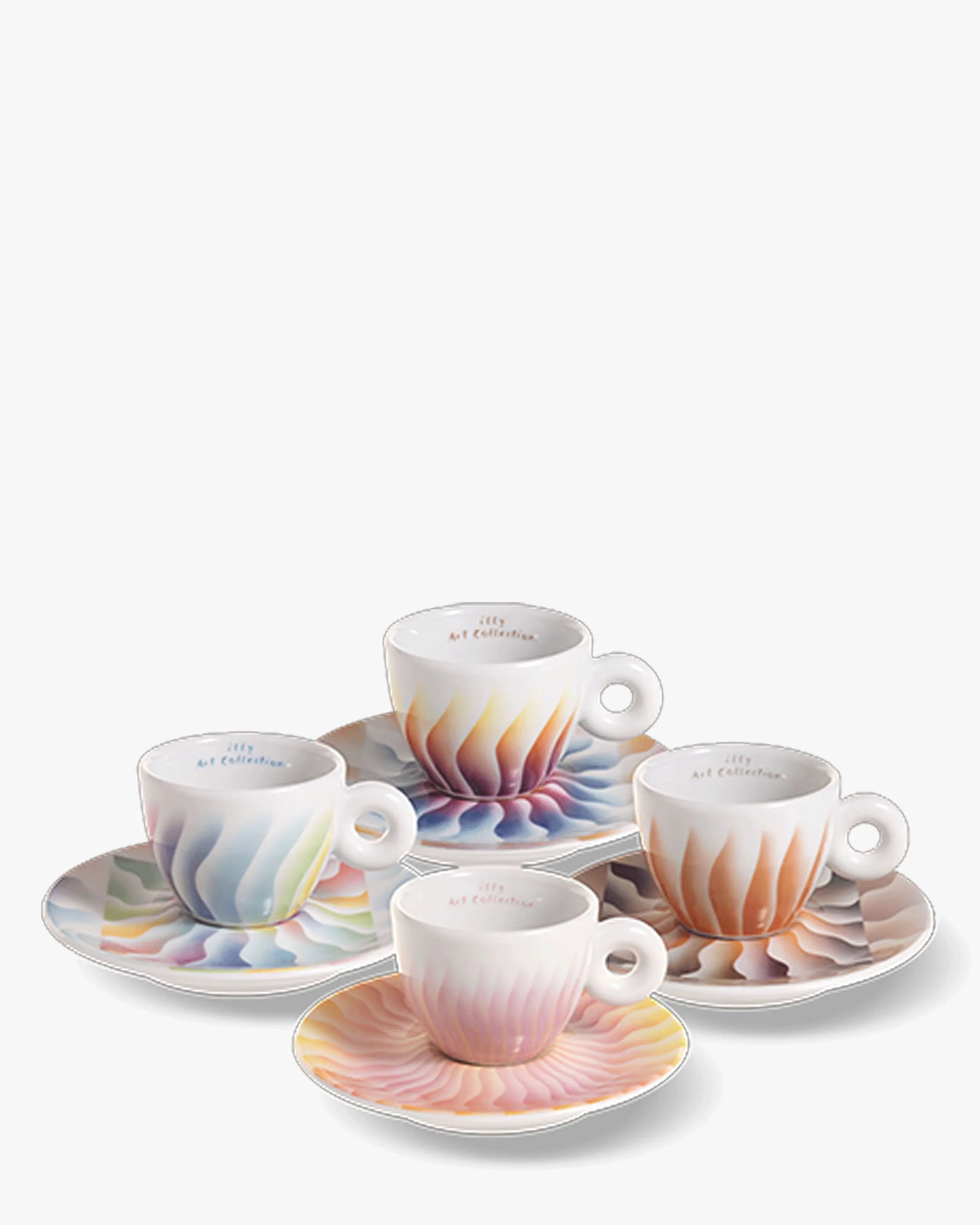 More than kitchenware, these Judy Chicago Illy Art Collection cups redefine what it means to blend art with utility. Ideal for collectors, design lovers, or anyone passionate about meaningful beauty, this set makes every coffee break a moment of reflection.Illy Art Collection set 4 espresso coffee cups designed by Judy Chicago
