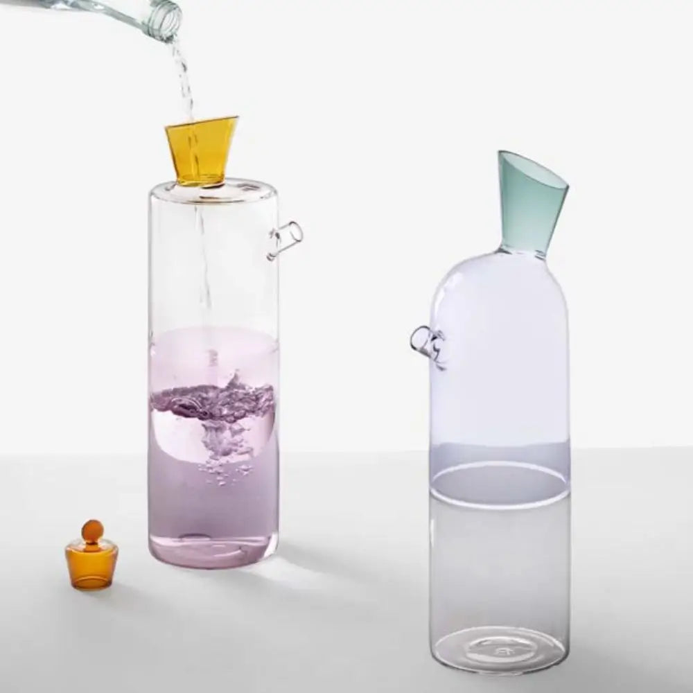 The Ichendorf Travasi bottle embodies the playful elegance and fluid aesthetic typical of Astrid Luglio, who interprets everyday objects through light, contemporary gestures. Part of the Ichendorf Bottles family, it is designed to serve water, wine or fresh juices with a clarity that enhances the beauty of the table. Available in charming colour combinations such as pink, clear or amber, or in alternative shades like clear, lilac and green, it pairs naturally with stem glasses, tumblers and even the sculptural accents of Ichendorf Footed Plates collection.