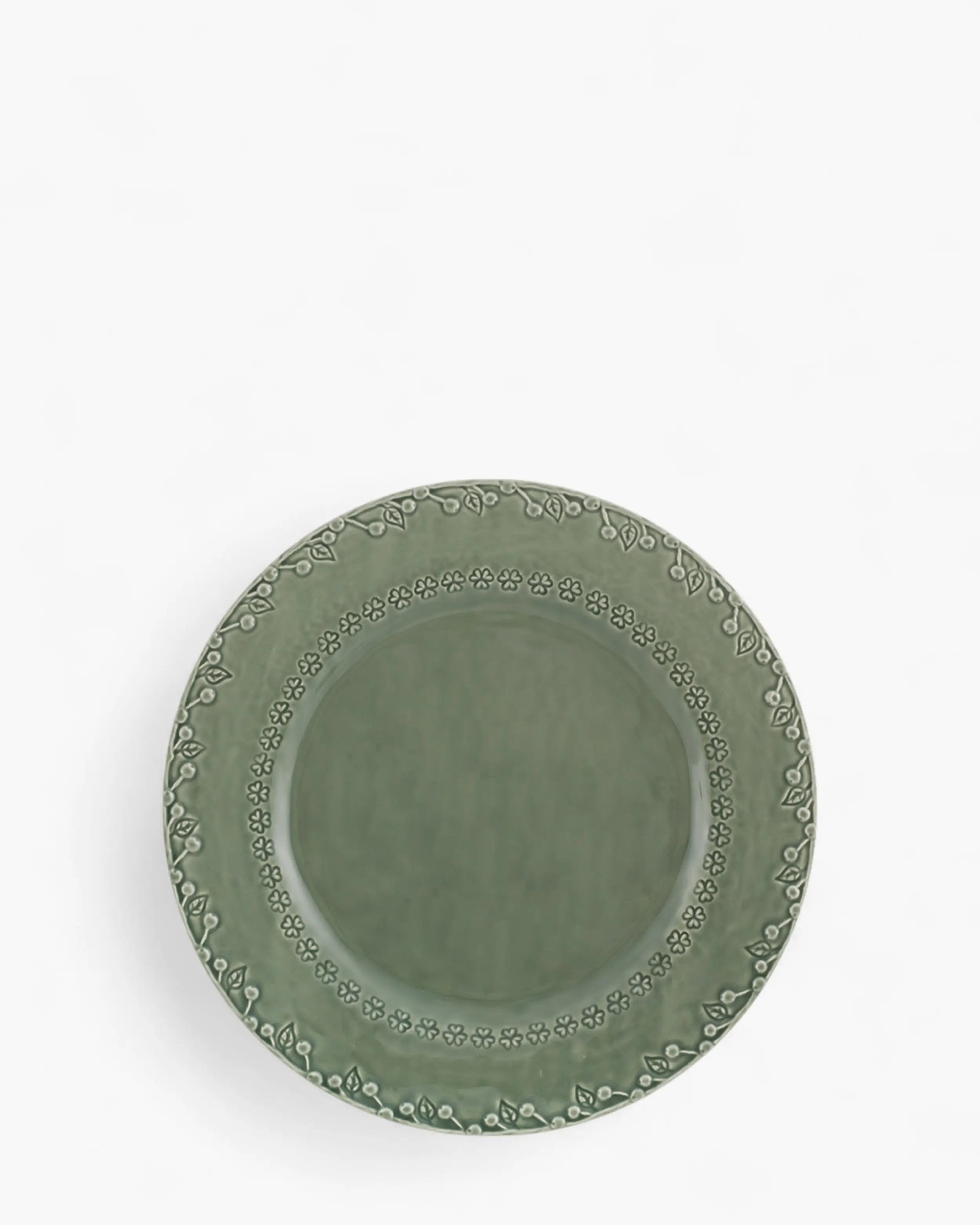 Perfect for both casual meals and formal dinners, the Flora ceramic plate brings freshness and refinement to any table. Combine it with charger plates, cups, and bowls from the Flora line for a coordinated botanical theme, or mix colors and sizes for a contemporary, eclectic approach. Whether chosen in blue for a serene atmosphere, grey for sophistication, green for vibrancy, or white for timeless elegance, the plate adapts seamlessly to different dining occasions.
