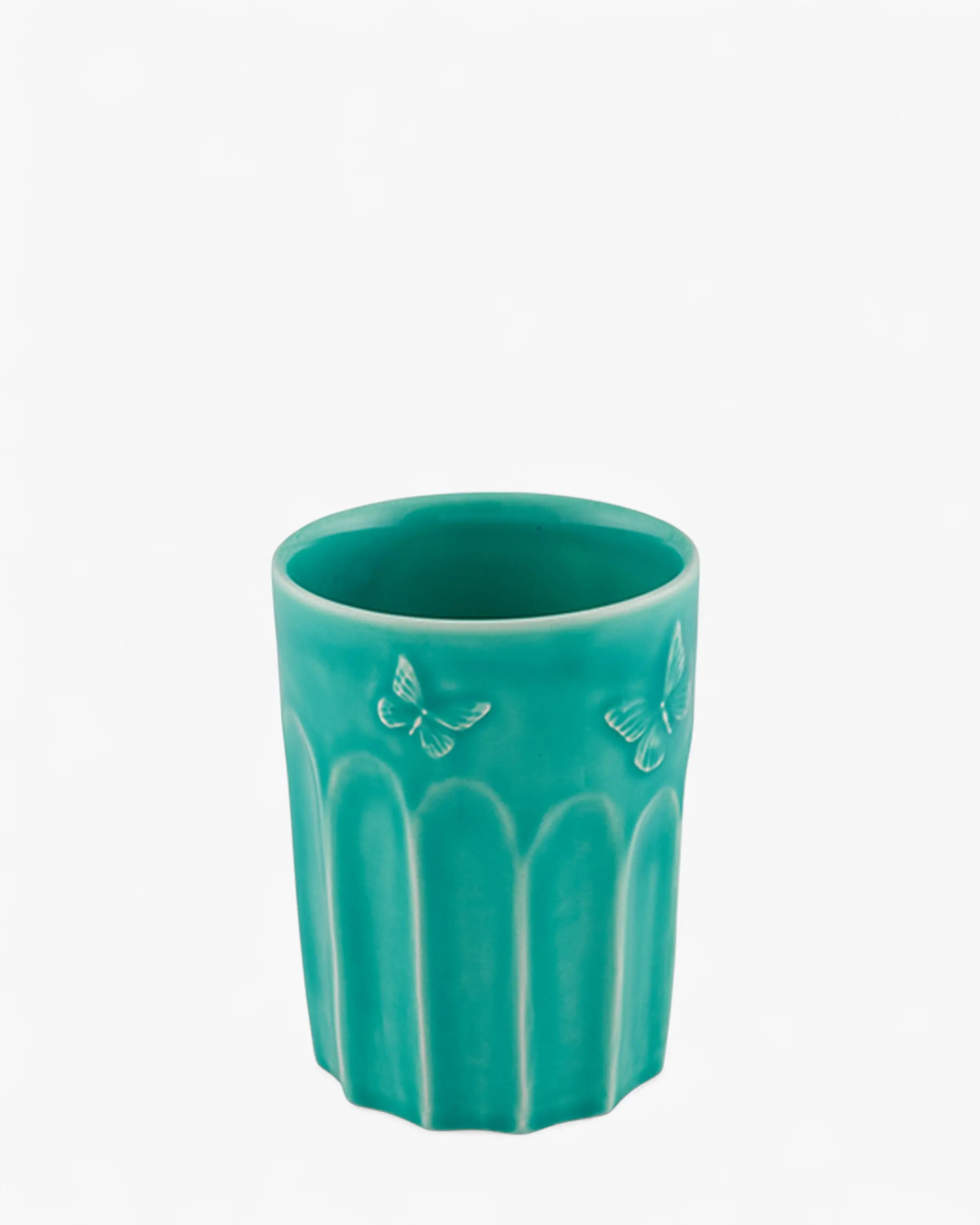 Available in shades of green, white antique, mint green, and red, this highball glass offers multiple moods for the table. You can mix tones for striking contrasts or choose a single hue for a calm, architectural effect. Whatever the palette, the Bordallo Pinheiro Pátio tumbler brings harmony to pitchers and plates from your dining table, shaping a vibrant setting that feels just as at home at a sunny terrace brunch as it does during late-evening digestifs.
