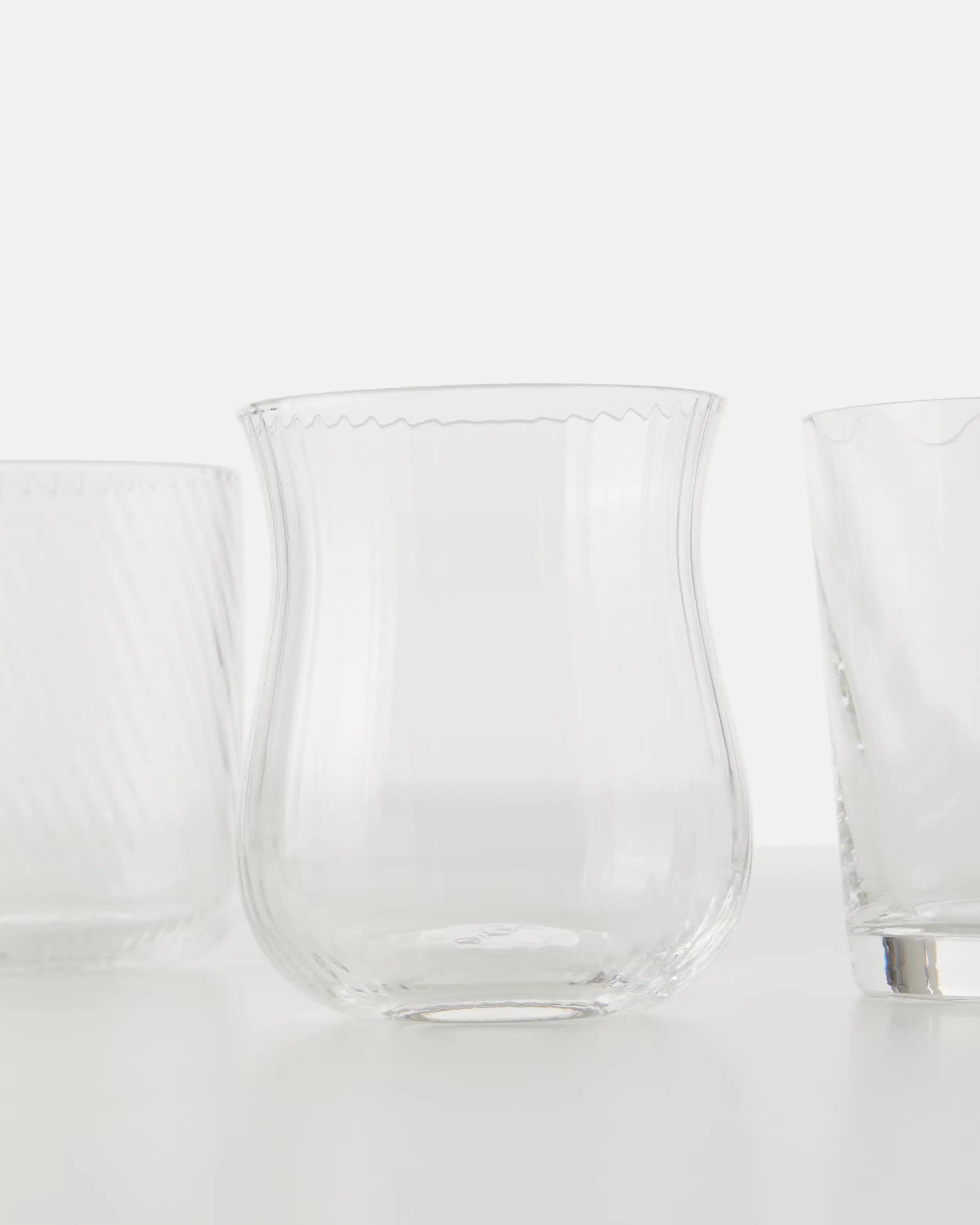 The Bitossi Diseguale textured tumblers reinterpret Italian glassmaking tradition with a modern twist. Each hand-blown glass is slightly different in form and texture, reflecting the artisanal process behind its creation. The irregular motifs, from soft ripples to geometric impressions, make every set unique, just like the homes that welcome them. Their versatile charm pairs beautifully with the tumblers & stem glasses range, enhancing both casual breakfasts and sophisticated dinner parties with an artistic accent.
