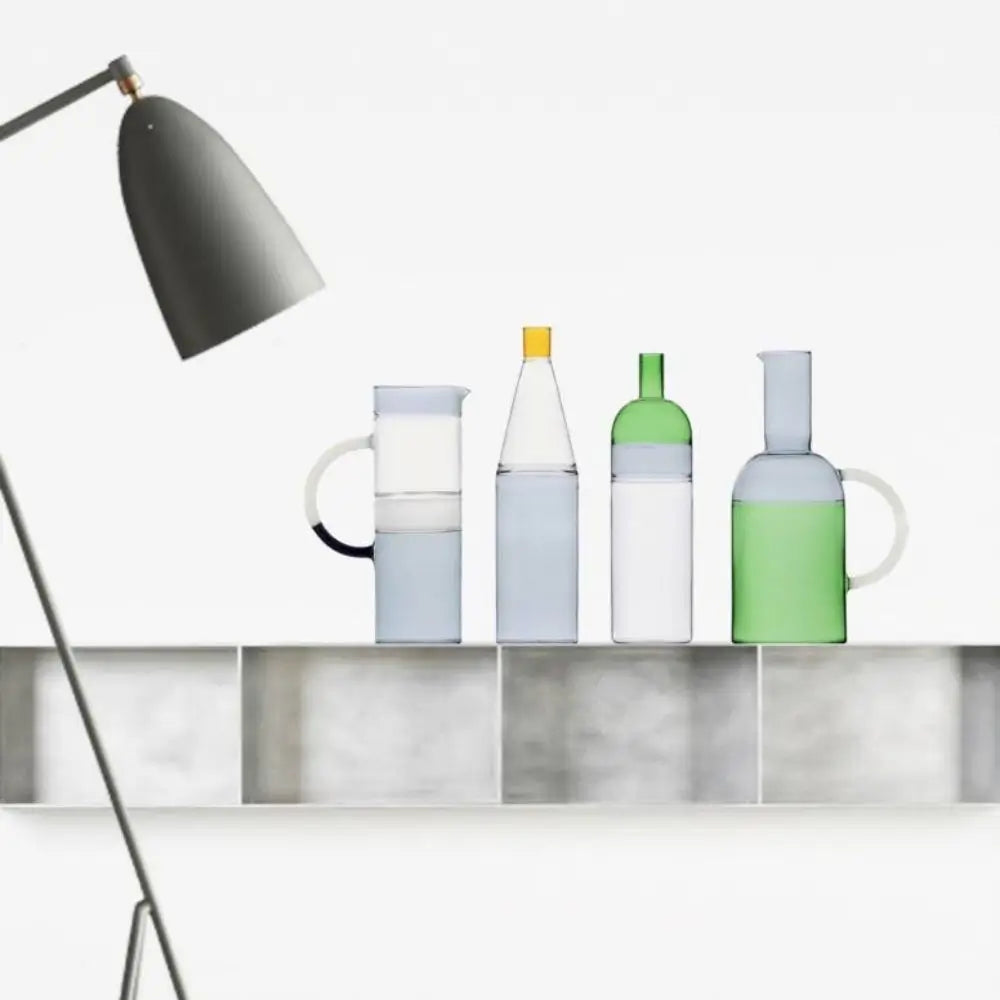 The additional information clearly states that the jug is available in smoke/white/clear and green/smoke/clear, giving customers two very different visual atmospheres to choose from. It also specifies that the jug pairs well with Ichendorf tumblers and the Ichendorf Bottles. This makes the piece naturally adaptable to a wide variety of table settings: from simple water service to creative cocktail moments or relaxed weekend meals. Thanks to its cylindrical silhouette, it aligns neatly with other tall vessels and carafes, creating harmonious compositions for dining tables, open shelves or kitchen counters.