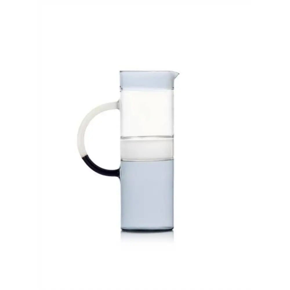 The Ichendorf Tequila Sunrise cylindrical jug brings a calm, architectural presence to the table. Designed by Mist-O, it sits within the Ichendorf | Pitchers & Jugs family as a piece defined by linear clarity and soft chromatic gradation. Its tall cylindrical body reads almost like a column of colour, where subtle tonal shifts—moving through smoke, white, and clear, or through green and smoke—add quiet depth to the glass without disturbing its essential simplicity. The result is a jug that feels both contemporary and serene, a functional object shaped with the elegance of a composed, deliberate gesture.
