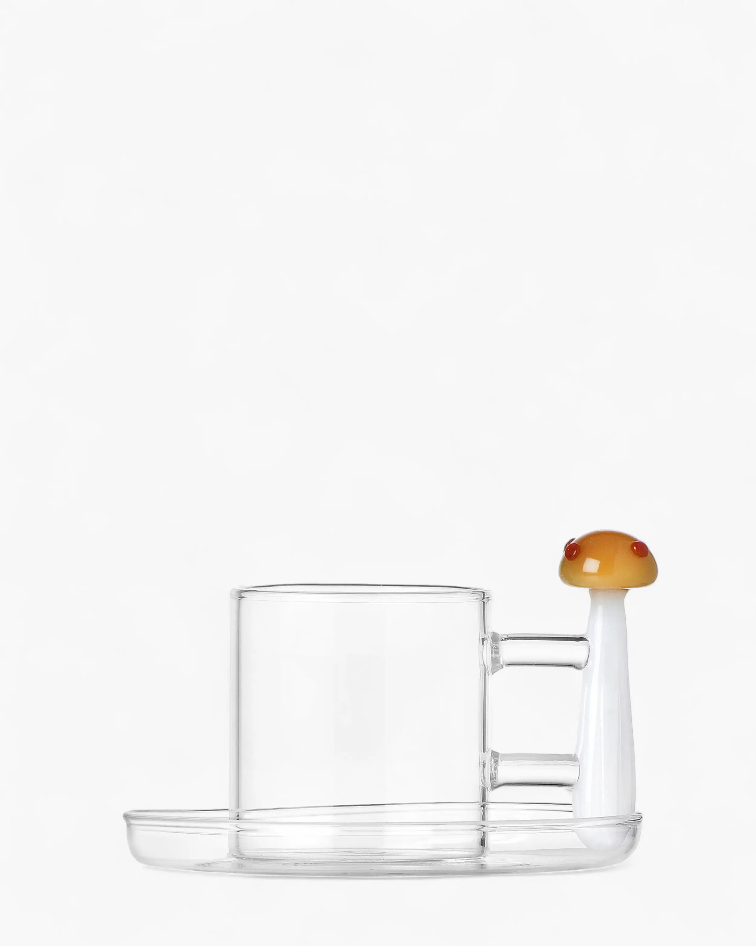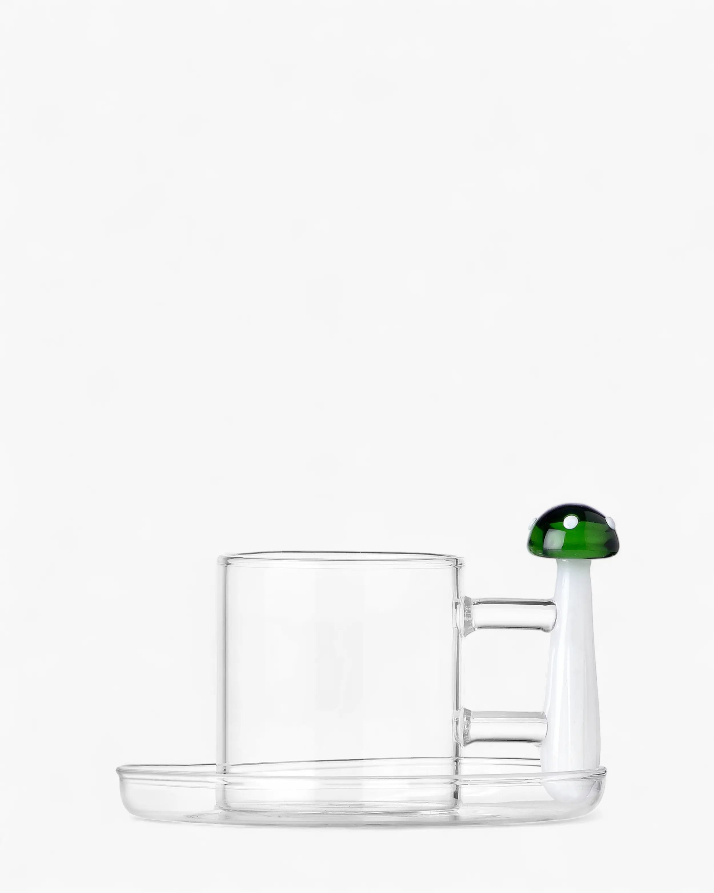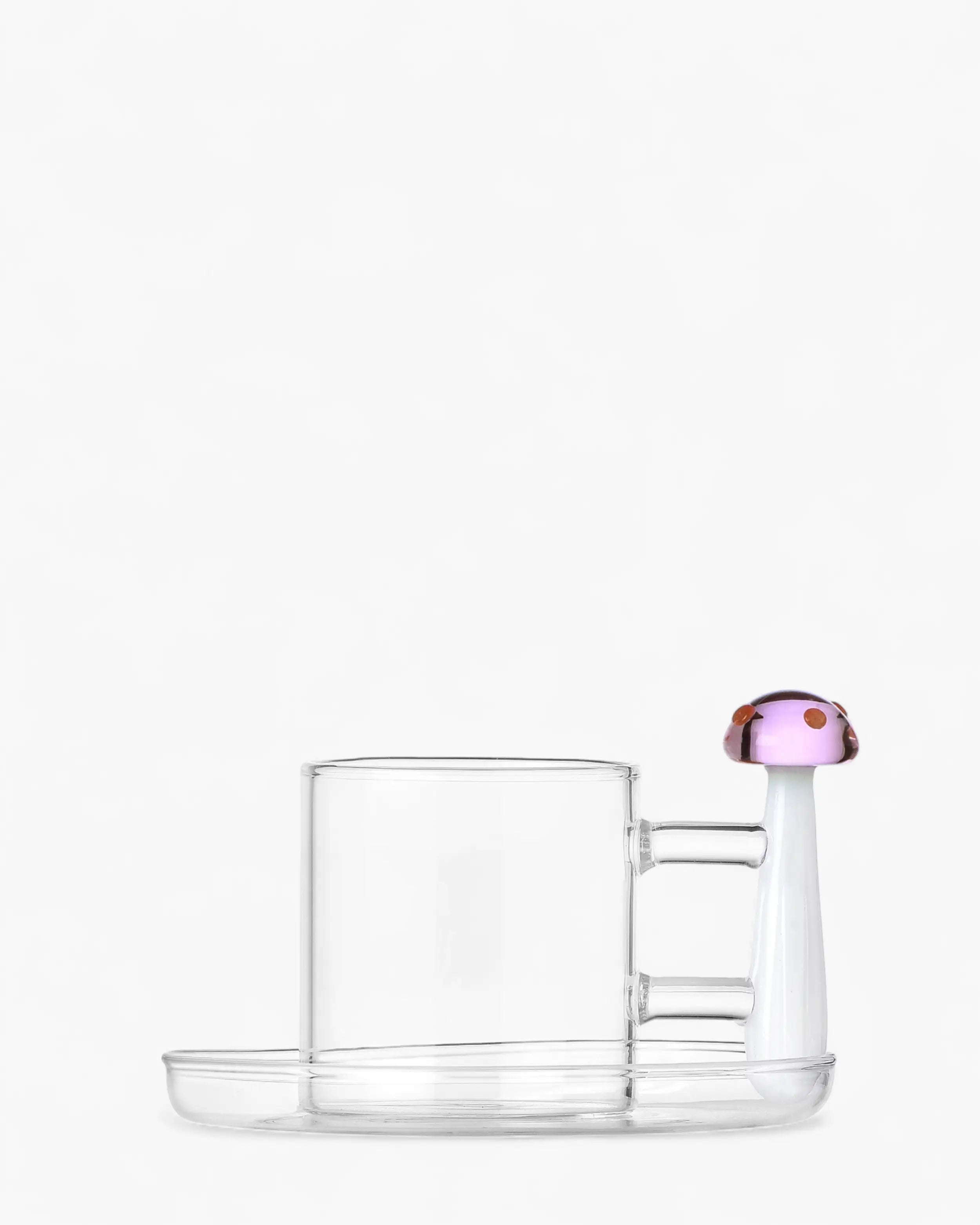 Each Ichendorf Alice espresso cup is handmade using flame-worked borosilicate glass: renowned for its resistance and crystal clarity. The tiny mushroom figure inside the transparent base seems to float, merging craftsmanship with storytelling. It’s a design that surprises and delights, appealing to those who appreciate both playful aesthetics and meticulous artistry. Available with the mushroom design in different colours: pink, white, green, and amber; it allows collectors to create a vibrant and personalized set that reflects their own sense of joy and creativity. Perfectly complementing the Ichendorf Animal Farm collection and the Botanica collection, it celebrates the poetic dialogue between nature, imagination, and Italian glass artistry.