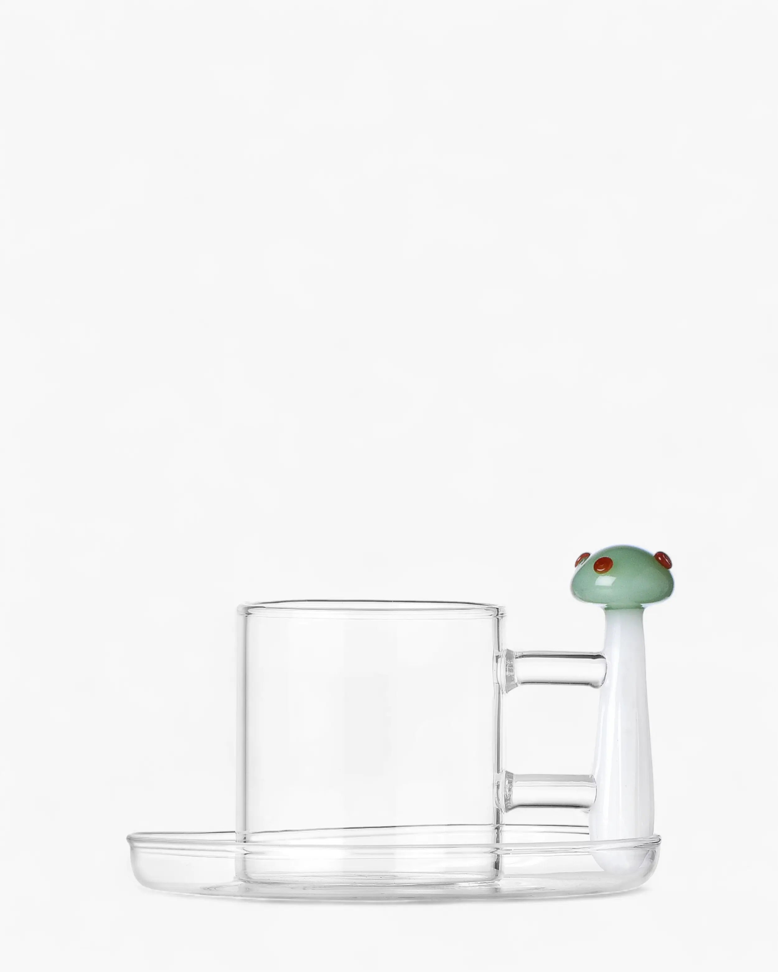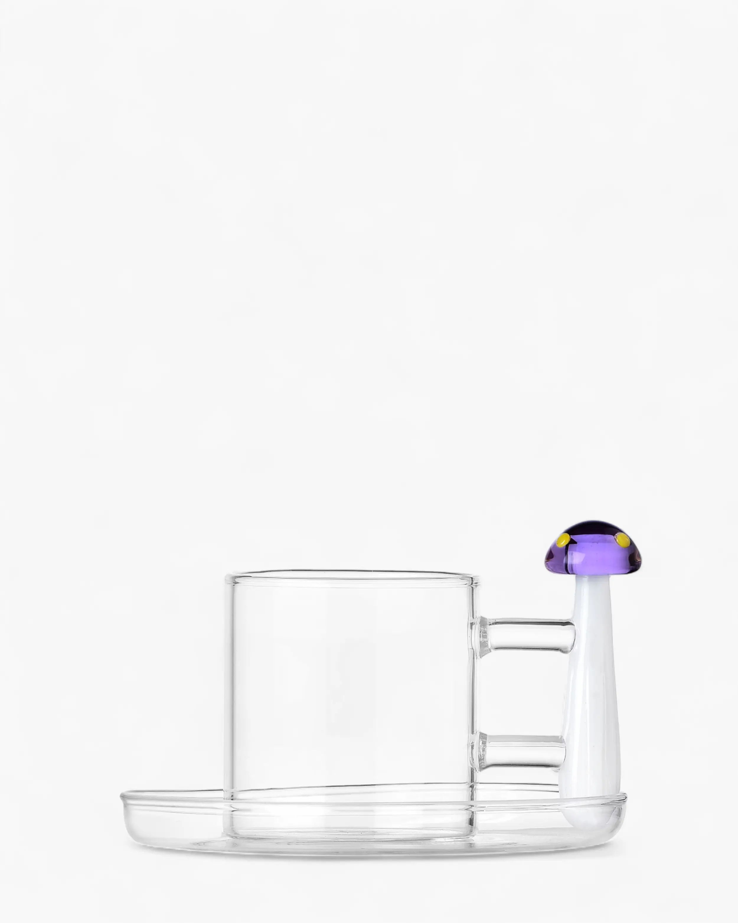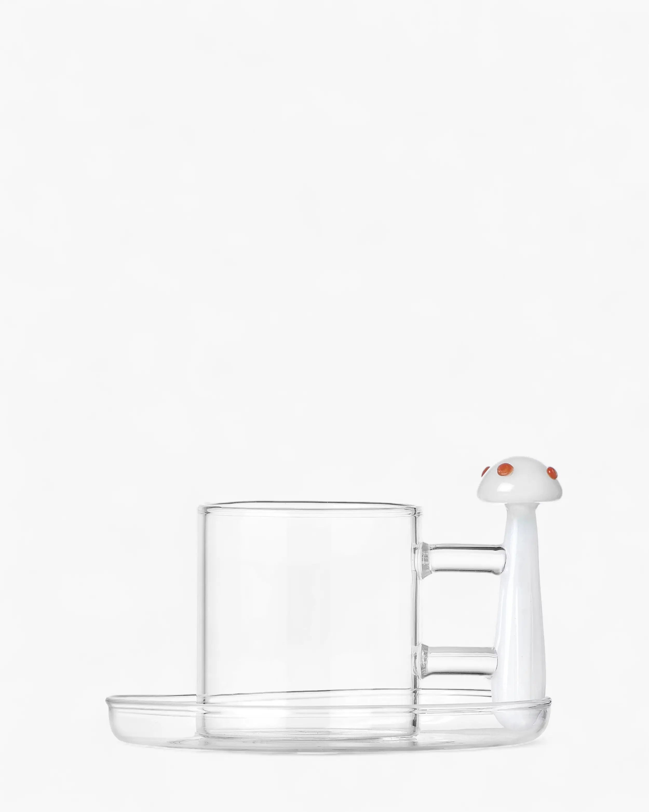 Each Ichendorf Alice espresso cup is handmade using flame-worked borosilicate glass: renowned for its resistance and crystal clarity. The tiny mushroom figure inside the transparent base seems to float, merging craftsmanship with storytelling. It’s a design that surprises and delights, appealing to those who appreciate both playful aesthetics and meticulous artistry. Available with the mushroom design in different colours: pink, white, green, and amber; it allows collectors to create a vibrant and personalized set that reflects their own sense of joy and creativity. Perfectly complementing the Ichendorf Animal Farm collection and the Botanica collection, it celebrates the poetic dialogue between nature, imagination, and Italian glass artistry.