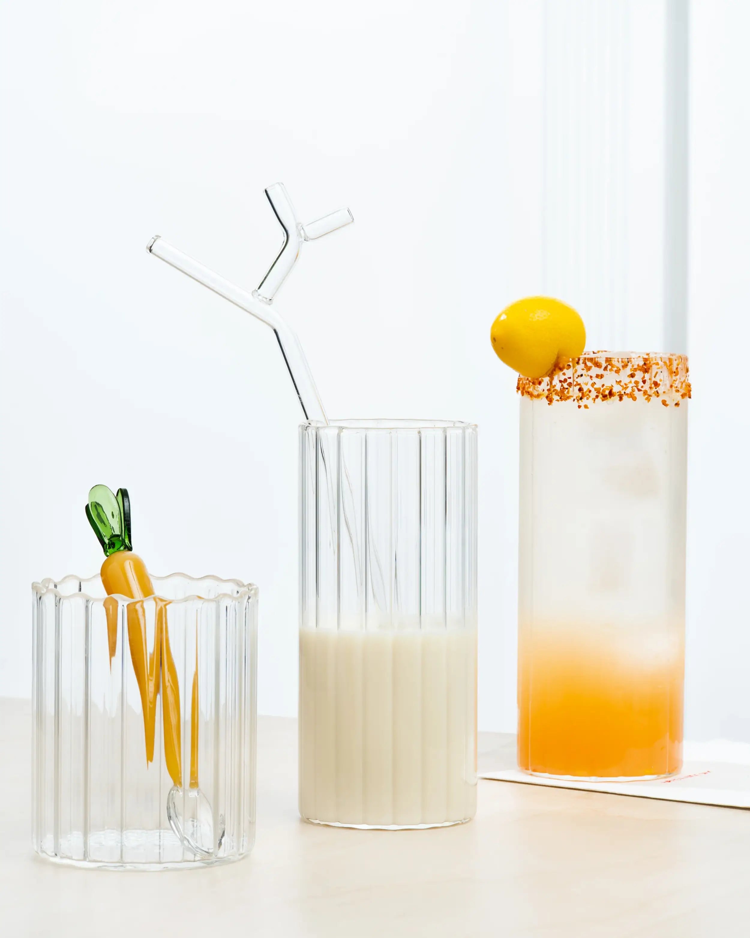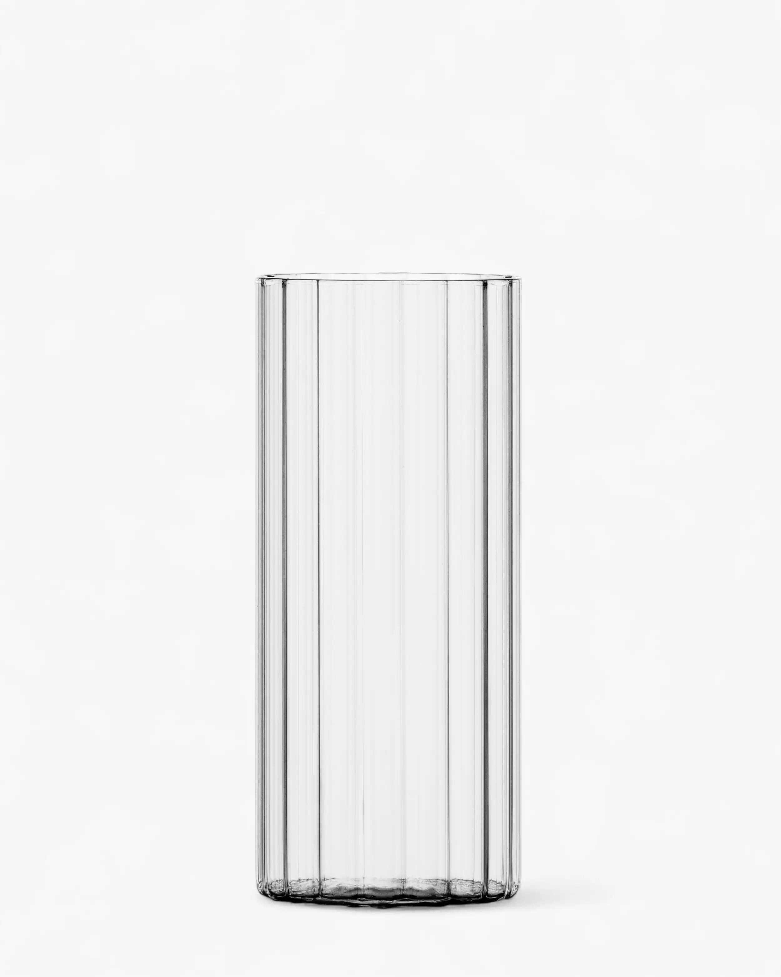 The collection is made of handmade and lampworked borosilicate glass: weightless, clear, and resistant. Every handmade clear tall glass carries tiny marks of its creation, a dialogue between artisan and flame. Intended for alimentary use, it maintains purity and aroma across drinks, from juice to gin tonic. Designed for lasting beauty, it is dishwasher safe at low temperatures (40 °C/104 °F recommended), ensuring each piece retains its crystalline glow through everyday or professional service.
