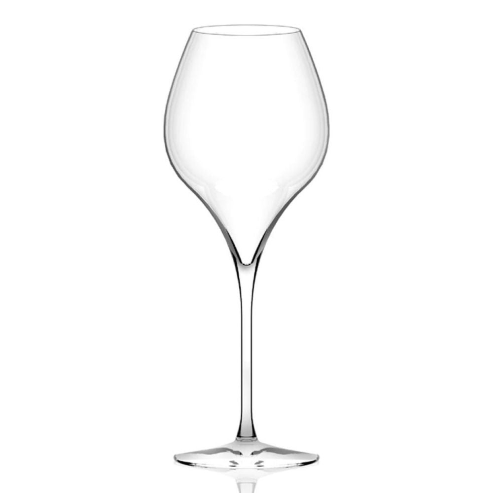 The 445 cc capacity offers calibrated internal space that promotes gradual oxygenation while maintaining aromatic focus. This proportion makes the glass suitable for vibrant white wines, medium-structured reds and selected sparkling wines, ensuring definition and balance during professional tastings. The fine rim refines perception on the palate, while the elongated stem guarantees stability and comfortable handling. As part of a coherent designer stemware concept, the six-piece set ensures uniform presentation across high-level wine service programs.Xtreme crystalline glass for durability and brilliance