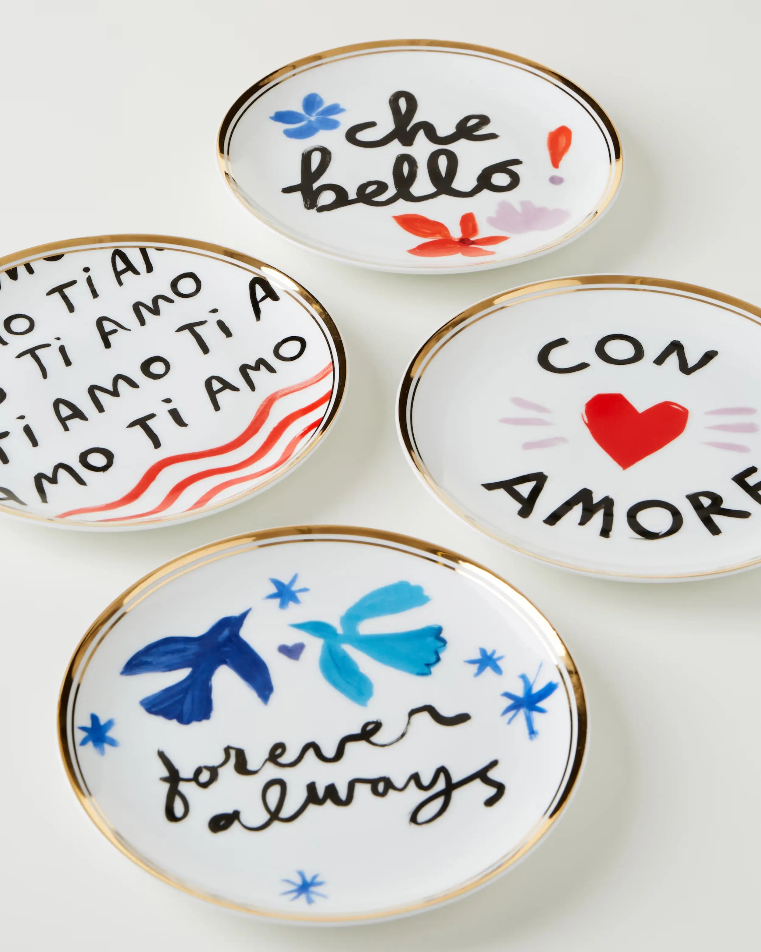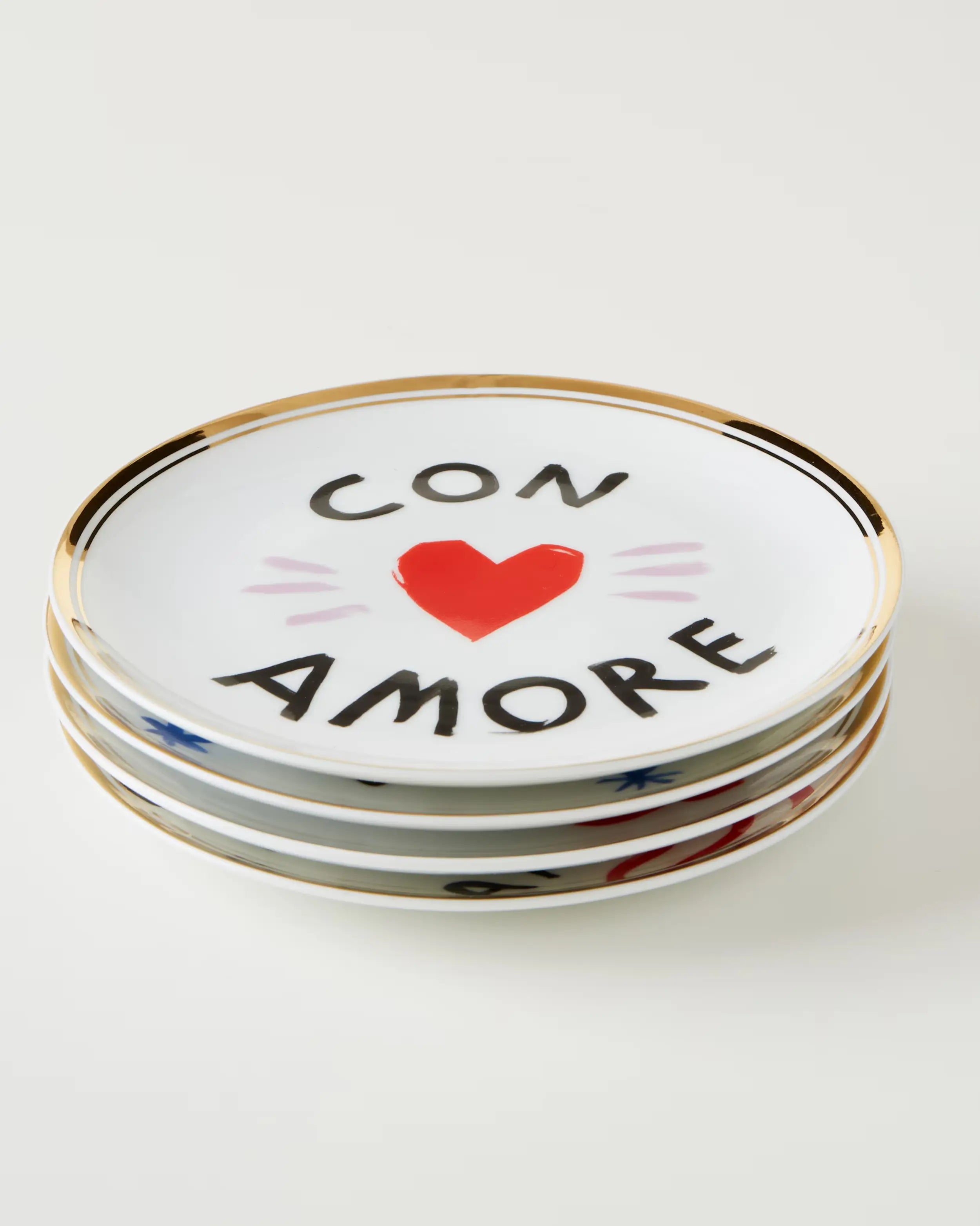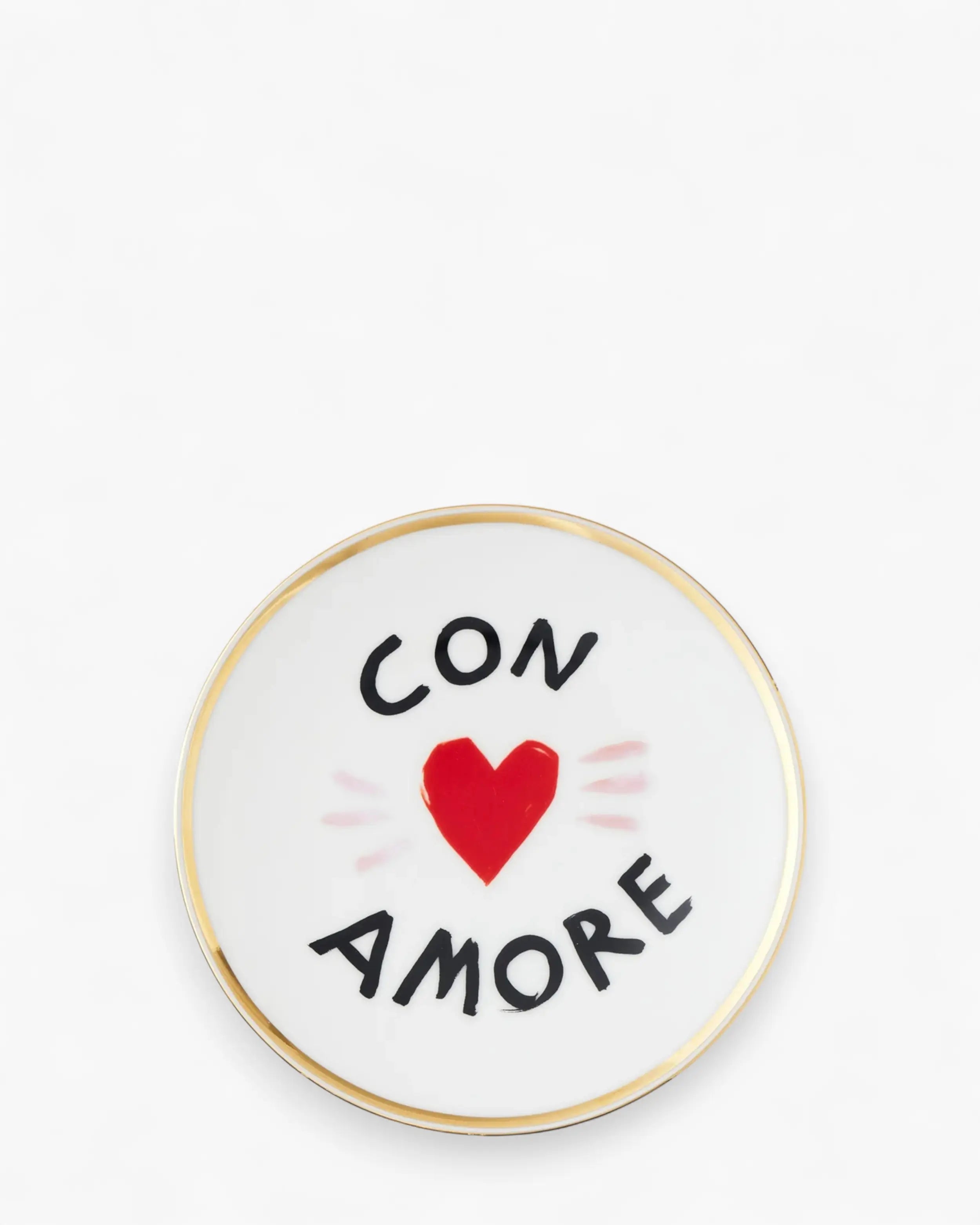 The Bitossi Home Con Amore collection encapsulates the beauty of affection through refined Italian artistry. The plates in this line, created by Chiara Perano, combine delicate craftsmanship and timeless elegance, offering a poetic way to celebrate everyday dining. The Bitossi Con Amore small plate stands out as a symbol of passion and sophistication, featuring hand-applied gold-edged decals that shimmer softly with every reflection of light. These porcelain creations blend playful charm with the excellence of Italian savoir-faire, making them a statement piece for every refined table.
