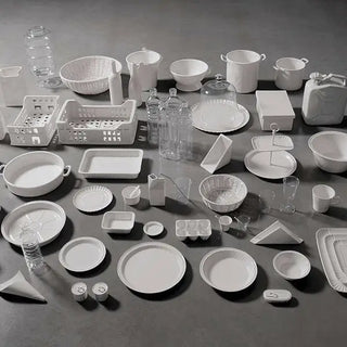 This Seletti tableware collection is rich in reinterpretations of classic tableware. Think of elegant glasses with a utilitarian look, or porcelain mugs and cups that mimic the silhouette of plastic and paper drinkware. These aren’t gimmicks; they’re thoughtful, ironic gestures that elevate the act of drinking and serving. From designer plates shaped like fast-food trays to quirky bowls that feel both nostalgic and sculptural, everything tells a story of transformation.