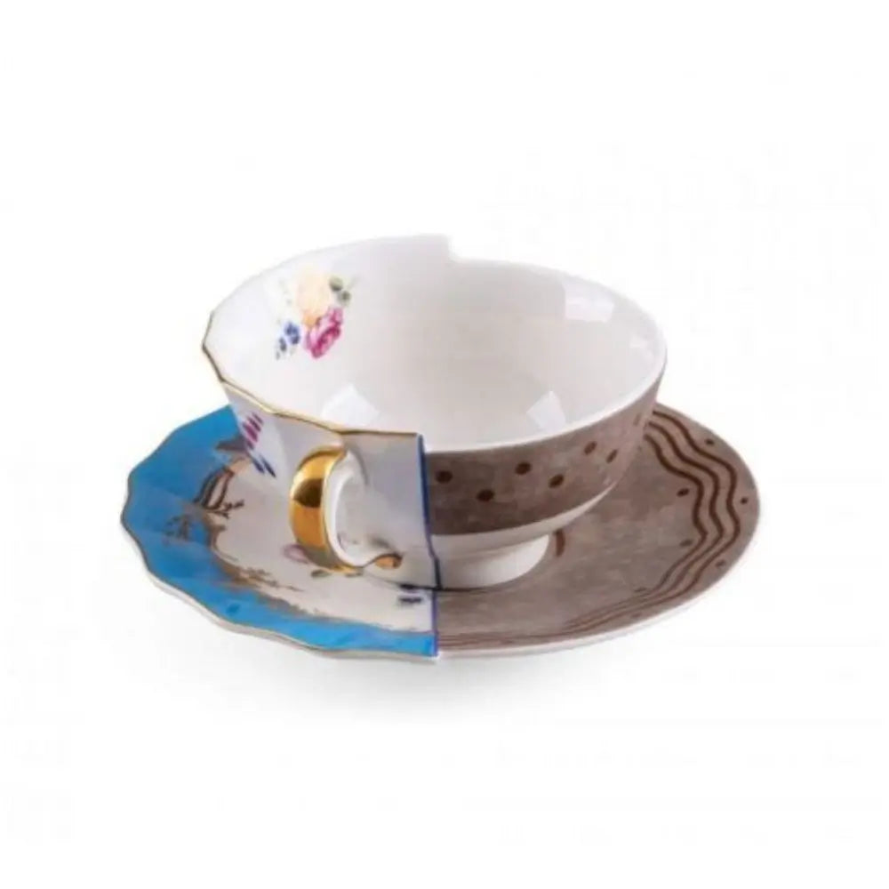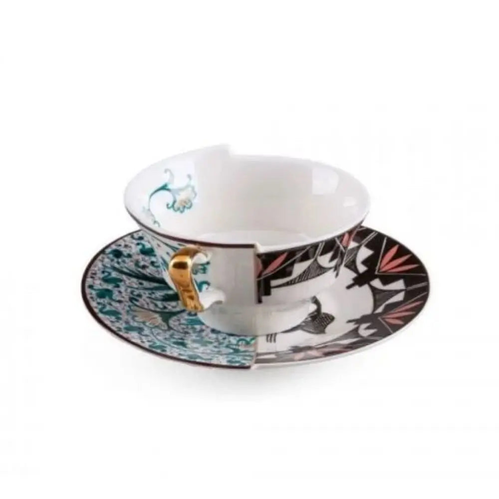 Placed on a breakfast tray, a sideboard, a tearoom counter or an open kitchen shelf, the Seletti Hybrid porcelain tea cup with saucer immediately becomes a point of interest. It fits beautifully into modern homes that embrace eclectic combinations, into minimalist spaces where a single colourful object is enough to shift the atmosphere, and into boutique cafés that turn every serving element into a design statement. Customers wishing to buy Seletti Cups & Co, collectors of modern Cups & Co, or enthusiasts of bone china porcelain Cups & Co contemporary design will find in this piece a compelling balance between function and artistic experimentation. It also enriches any luxury Cups & Co collection or curated Seletti collection, adding a touch of humour and depth to the ritual of sharing tea. More than a simple vessel, this tea cup with saucer turns every pour into a reminder that different cultures can coexist beautifully, especially when brought together through thoughtful design.Seletti Hybrid 2.0 porcelain tea cup with saucer