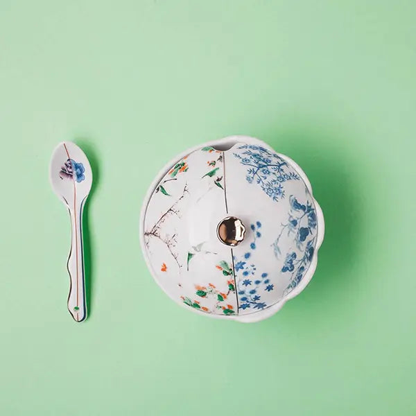 Crafted entirely from Bone China porcelain, the Seletti Hybrid porcelain sugar bowl Maurilia showcases the luminous surface and delicate translucency that distinguish this material. Its double decoration , a hallmark of the Seletti Hybrid collection , divides the bowl into two distinct visual identities, separated by a coloured line that symbolises both distance and connection. The golden handle adds a touch of refined luxury, enriching the object’s sculptural presence while maintaining its functional integrity. Designed for alimentary use, this sugar bowl sits at the intersection of practicality and artistic expression. As part of the ongoing CtrlZak and Seletti collaboration, it extends a conceptual narrative about the historical relationship between East and West, a theme that echoes across the entire Seletti's Tableware range. For fans exploring Hybrid tableware Seletti or collectors seeking artistic tableware Seletti pieces, Maurilia offers a blend of contemporary sophistication and cultural storytelling.A Decorative Treasure for Modern Tables and Refined Tea Sets