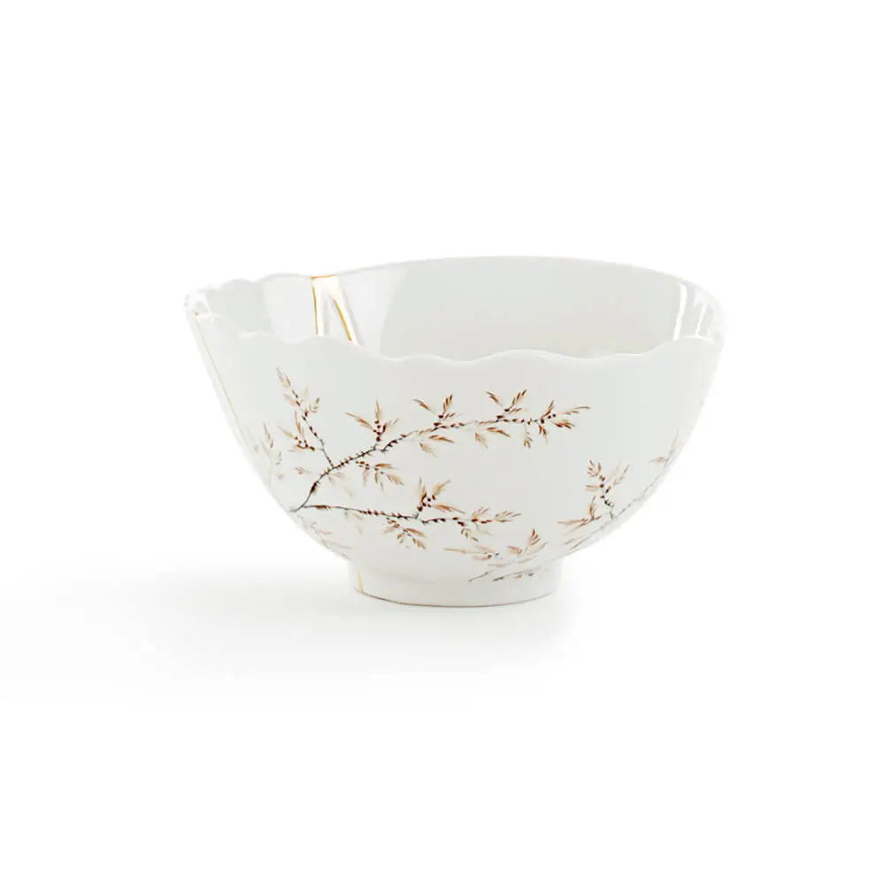 The Seletti Kintsugi bowl in porcelain/24 carat gold transforms the simple act of serving into a poetic design experience, where utility meets artistic storytelling. Crafted from high-quality porcelain, it offers durability and is suitable for daily use, while the hand-applied 24-carat gold veins create a luminous, sculptural effect that emphasizes the philosophy of celebrating imperfections. Each model presents a unique arrangement of gold filaments, ensuring that every porcelain gold bowl becomes a distinctive centerpiece that merges function with aesthetic narrative. The luxurious finish and attention to detail naturally resonate with keywords such as luxury ceramic bowl, Japanese style tableware, and artistic tableware Seletti, making it a versatile addition to curated dining settings or modern interiors. As part of the broader Seletti's Tableware collection and the Marcantonio Raimondi Malerba and Seletti collaboration, the Kintsugi bowl embodies a philosophy where restoration, imperfection, and artistic intention converge. Its tactile surface and the interplay of white porcelain and golden lines invite the user to appreciate each serving as a visual and sensory ritual, elevating ordinary dining into a curated, contemplative moment. By blending contemporary design with traditional Japanese inspiration, the bowl creates a bridge between craftsmanship, symbolic meaning, and daily functionality, offering collectors and design enthusiasts a truly expressive piece that transcends conventional tableware.An Expressive Table Accent and Gift-Worthy Design