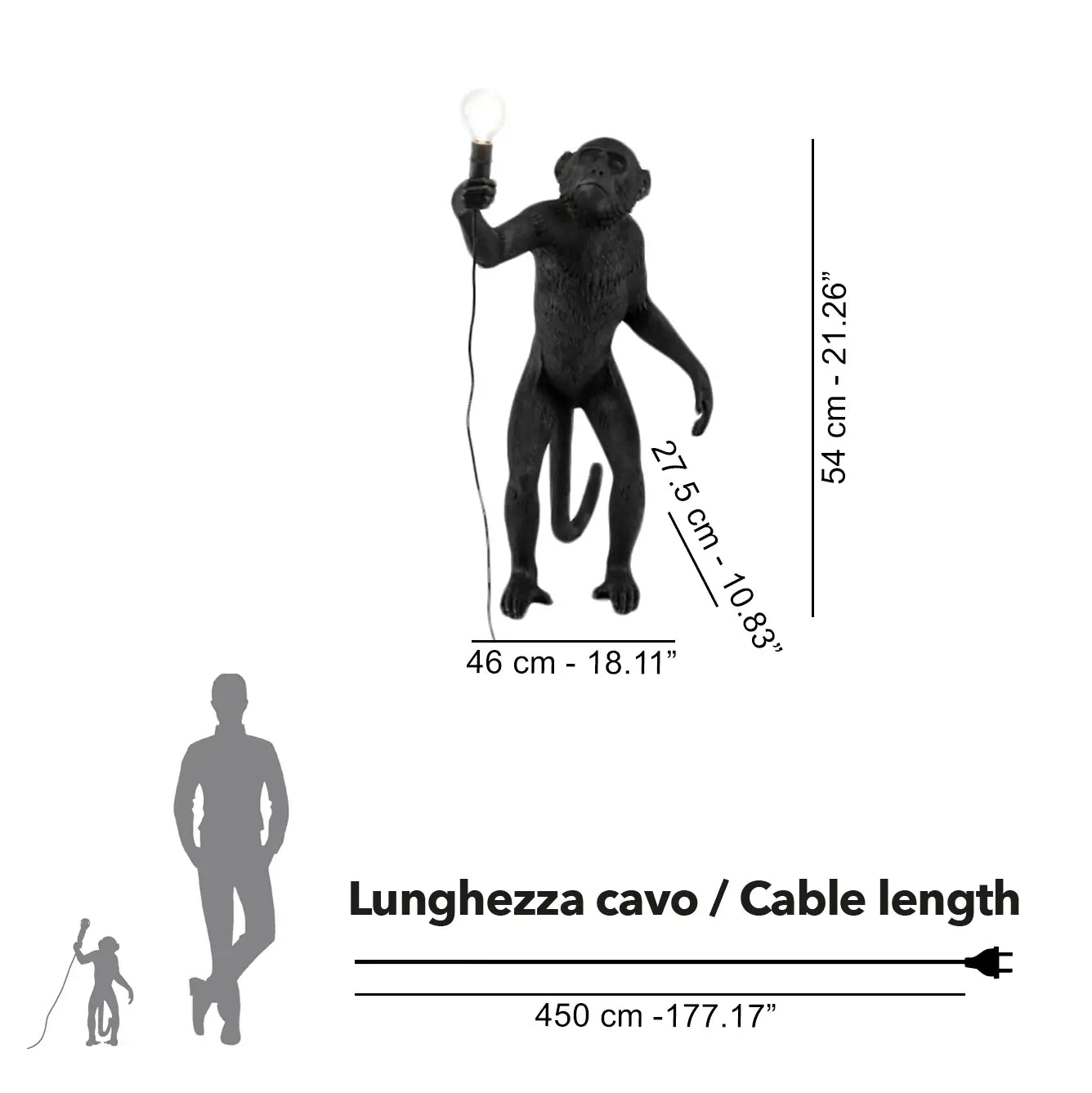 Designers value Standing for its scale, versatility, and capacity to create visual interest, homeowners appreciate its charm and practicality, while hospitality professionals rely on it to set immediate mood. To buy Seletti floor or table lamp online is to acquire a piece that combines surprise, reliability, and exceptional craftsmanship: the sturdy resin body ensures longevity, the long cable allows customization, and the LED source provides consistent, efficient illumination. The Seletti Monkey price reflects the balance of artistry, collectability, and functional innovation that defines the brand. Whether displayed individually as a statement or grouped with other monkeys to form a luminous menagerie, this lamp embodies the unmistakable wit, creativity, and design philosophy of Seletti.Seletti The Monkey Lamp Standing table lamp