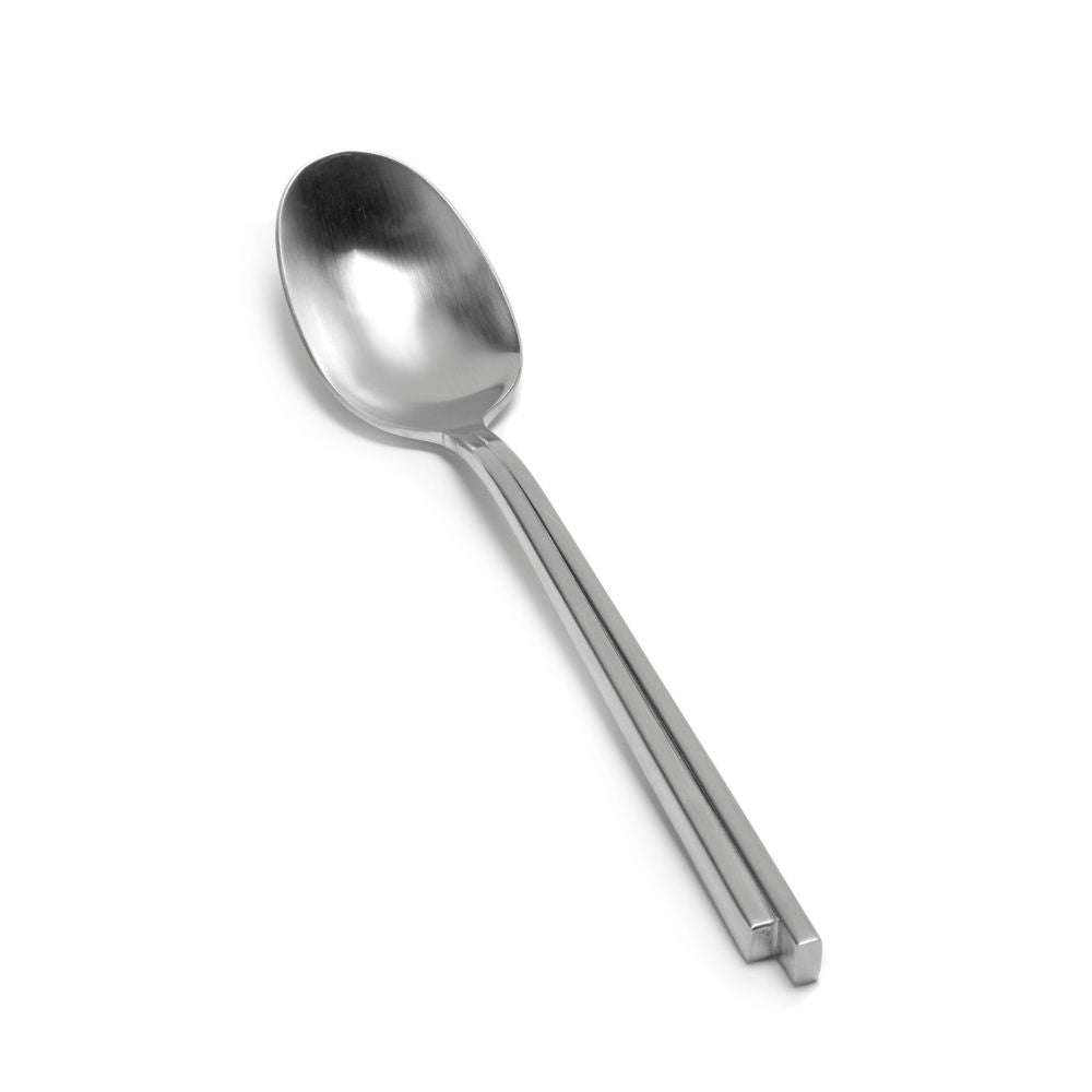The item has been hand-cast and hand-polished. It is equally suited for daily use or a formal dinner. Hand wash. Made of Steel, the spoon combines hygiene, longevity and weight for service and home use. Hand-cast details are refined by polishing; planes stay clear so reflections are controlled and the profile stays architectural. These qualities meet expectations in cutlery and mirror editorial standards for best cutlery serax.Collection logic within cutlery