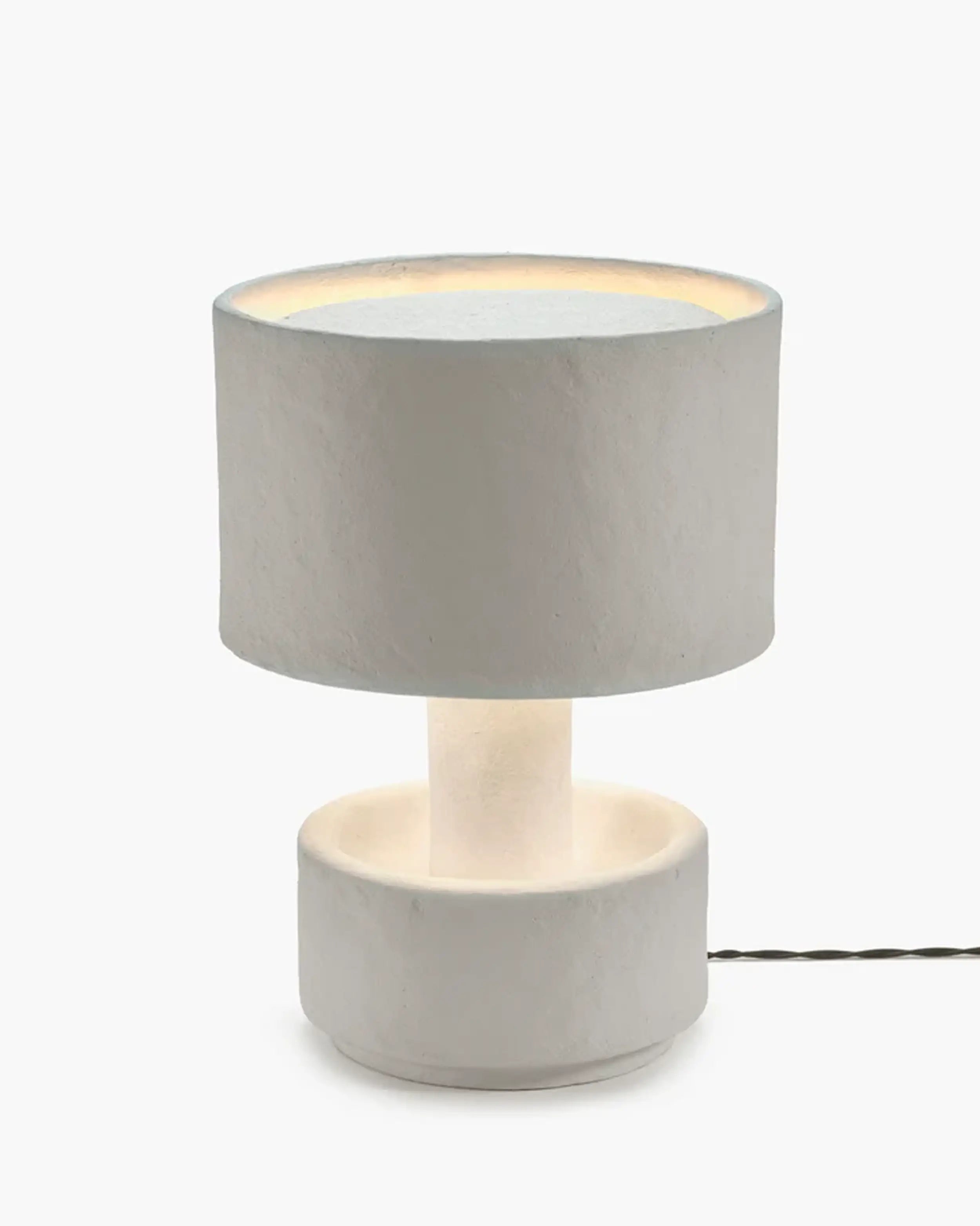 This lamp designed by Marie Michielssen for Serax is meticulously formed from papier-mâché, a material known for its organic texture and environmental sensibility. The artisanal process imbues every curve with subtle irregularities, celebrating craftsmanship and authenticity. While compact in form, the piece maintains a commanding presence, offering a warm, soft glow that enriches evening atmospheres. The bulb is not included, allowing for personalised selection to achieve the desired lighting temperature and mood.Design Versatility and Styling Potential
