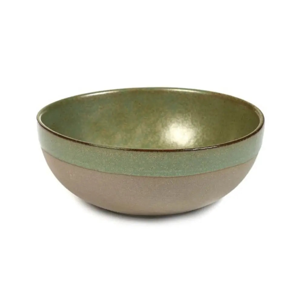 This ceramic side bowl design complements a wide range of settings, from refined dining tables to relaxed, minimalist interiors. The interplay between matte and glossy textures, between dark clay and luminous glaze, gives it a sculptural presence. When paired with glassware and neutral linens from Serax Home Accessories, the deep glazed surface dish becomes the visual anchor of a contemporary, grounded tablescape. Its tone — camo green infused with grey — evokes nature’s strength and serenity.