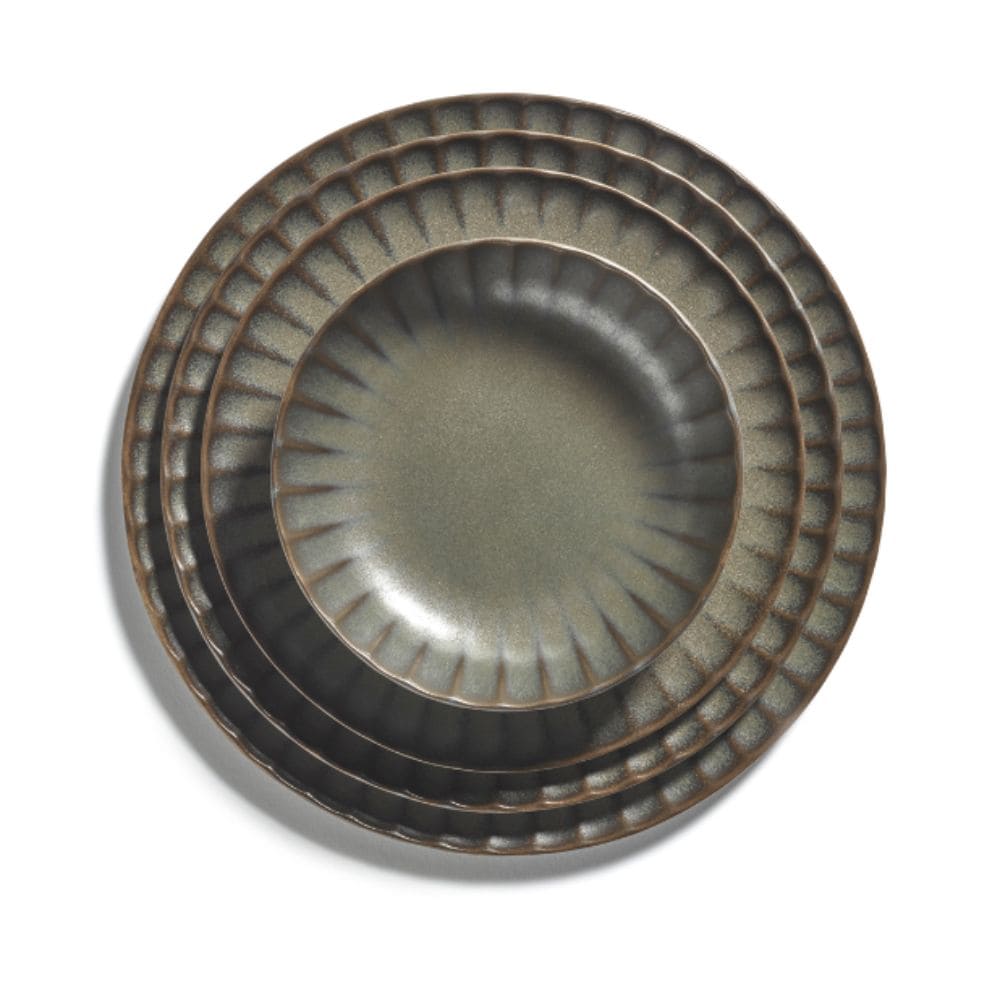 The Inku plate carries delicate ridges inspired by organic structures such as shells and flowers, subtle details that enhance tactility and light reflection. This quiet texture becomes the defining trait of the collection, reminding diners that elegance often lies in restraint. For those searching serax inku flat plate green, this piece demonstrates how Japanese influences—glazed finishes, muted hues, natural rhythm—can create Serax Tableware that resonates equally in casual and festive contexts.