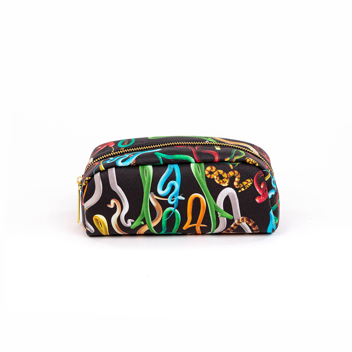 Belonging to the Toiletpaper Home Objects collection and the Seletti & Toiletpaper Travel collection, this zipped toiletry pouch is available in multiple patterns including Lipsticks Pink, Snakes Black, Revolver, and Seagirl. Each version carries the unmistakable DNA of Cattelan & Ferrari: audacious, witty, and instantly recognizable. The Seletti Toiletpaper case line has become synonymous with expressive individuality: inviting travelers, design lovers, and collectors to carry a piece of Italian surrealism wherever they go.