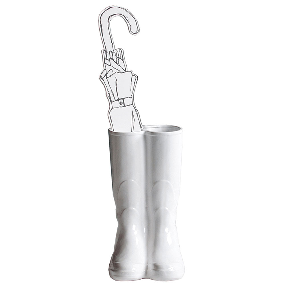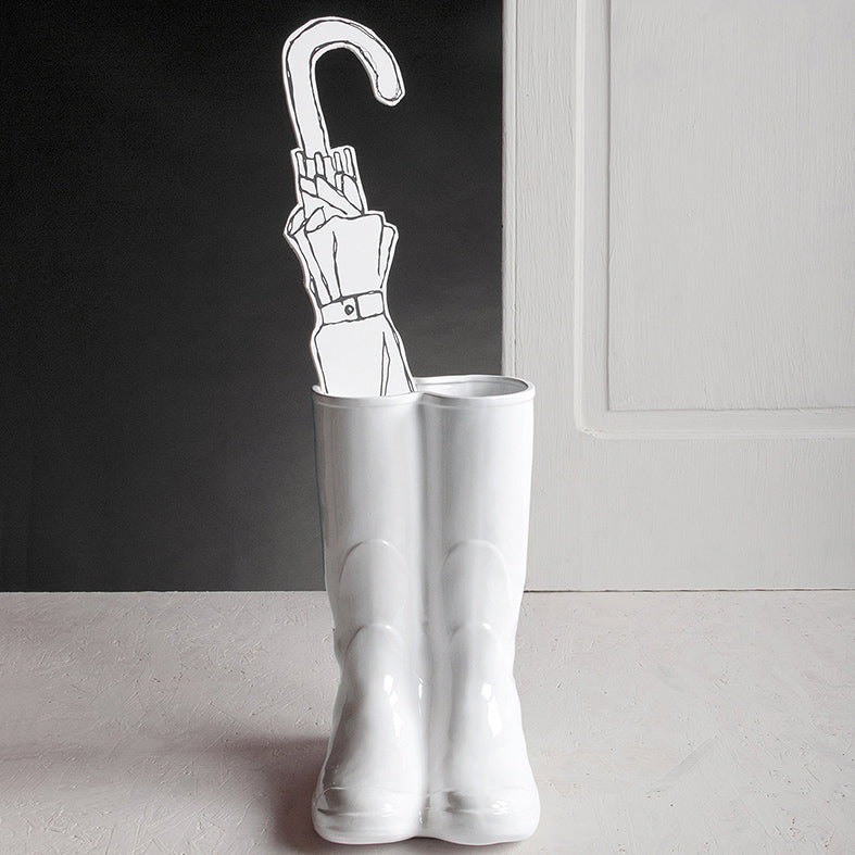 Made entirely of porcelain, the Seletti Rainboots umbrella stand white blends refined craftsmanship with a lighthearted aesthetic. The material gives weight and clarity to the silhouette while providing durability for everyday use. Designed for both indoor and outdoor settings, it offers flexibility for placement: at the entrance of a home, in a boutique hotel, on a covered porch, or even inside commercial spaces seeking a unique visual accent. The Seletti Rainboots umbrella stand white belongs to the Seletti's Furniture collection and reflects the expressive world of Selab Design and Seletti. For anyone looking for how to organize entryway solutions or searching for a quirky hallway accessory, this umbrella stand brings together functionality and a delightful, unexpected shape.A Decorative Accent That Completes Modern Entrances