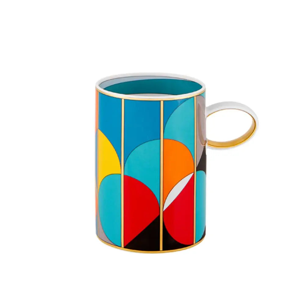 Conceived under the creative direction of Vista Alegre Design, the mug embodies the energetic visual identity of the Futurismo collection. Angular geometric motifs inspired by avant-garde artistic experimentation animate the porcelain surface, enhanced with luminous gold accents and hand-painted details that introduce depth and contrast. Within the universe of designer cups & co, the Futurismo mug demonstrates how ornamental composition can enrich a familiar everyday object without altering its functional clarity.Ergonomics and everyday beverage ritual