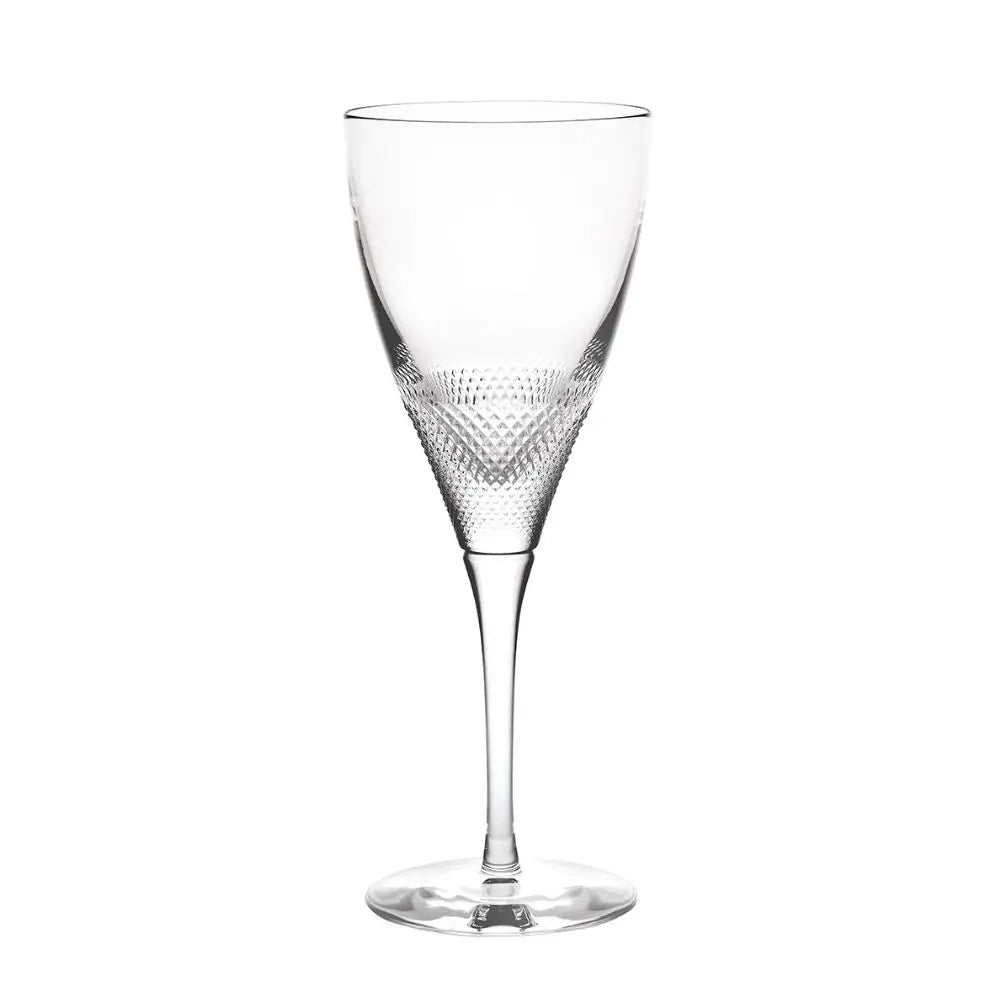 The bowl is proportioned to support multiple uses, accommodating water, white wine, and red wine while preserving visual rhythm. Its curvature promotes proper oxygenation without excessive expansion, maintaining a disciplined profile aligned with contemporary table aesthetics. The transition between bowl, stem, and base ensures ergonomic stability and fluid handling, enabling controlled service gestures. The brilliance of crystal enhances tactile and visual perception, reinforcing its role within refined settings. This balance reflects the approach of Vista Alegre Design, where each element is resolved with precision. Positioned in the Vista Alegre Tumblers & Wine Glasses category, the goblet meets expectations for glass stem glasses and refined designer stem glasses, combining clarity with architectural restraint.Compositional continuity and table integration