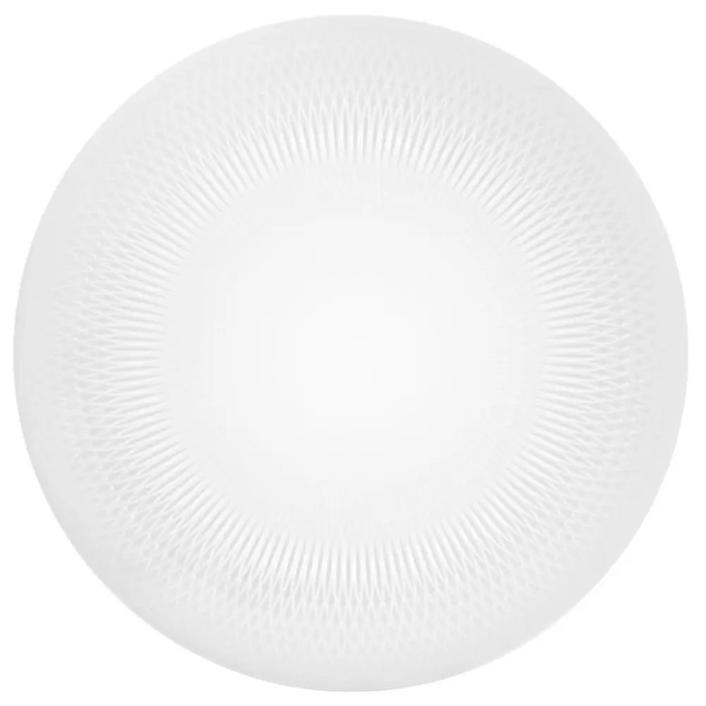The extended diameter allows the plate to anchor the place setting with precision, creating a defined boundary that enhances both visual balance and functional organization. Its flat surface ensures stability for layered elements, maintaining a clean and uninterrupted field that supports refined presentation. The porcelain body guarantees durability and a smooth tactile quality, reinforcing long-term usability in both everyday and formal contexts. This approach reflects the discipline of Vista Alegre Design, where geometry is used to structure space with clarity. Within this framework, the charger aligns with expectations of refined porcelain plates and understated designer plates, offering a balance between architectural presence and practical performance.Collection continuity and table architecture